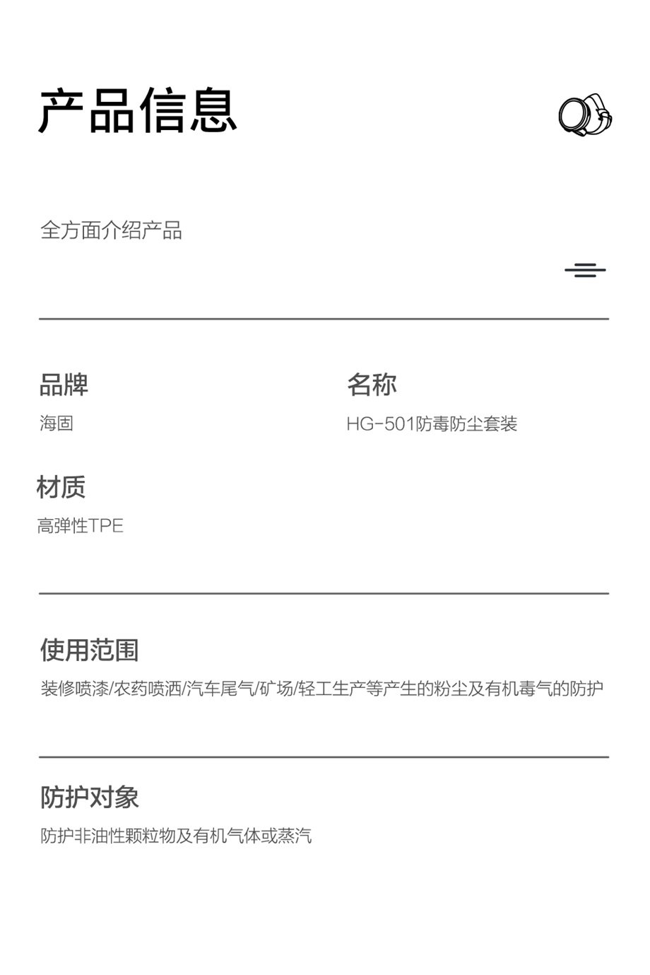 產(chǎn)品名稱:半面罩綜合套裝