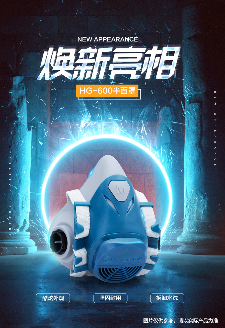 海固HG-600防毒面具半面罩 噴漆 化工 防有毒氣體、粉塵、毒蒸汽等