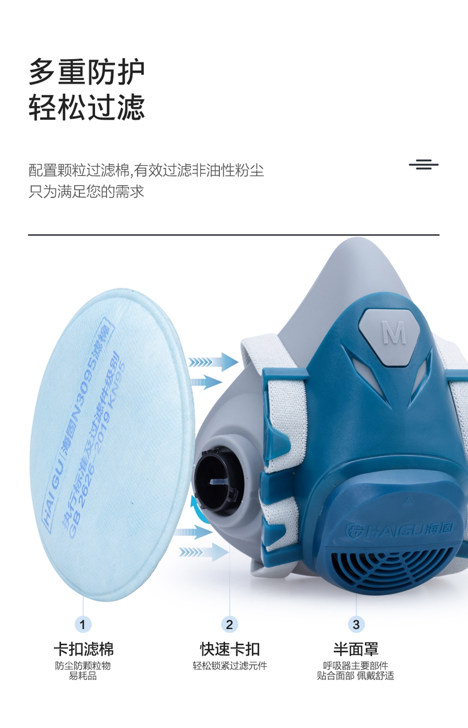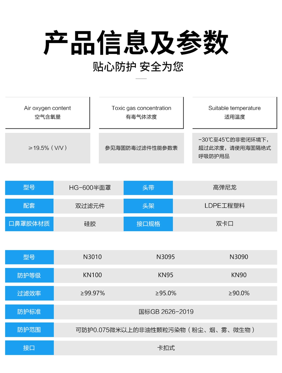 海固HG-600半面罩防毒面具+KN100/KN95/KN90非油性顆粒物濾棉