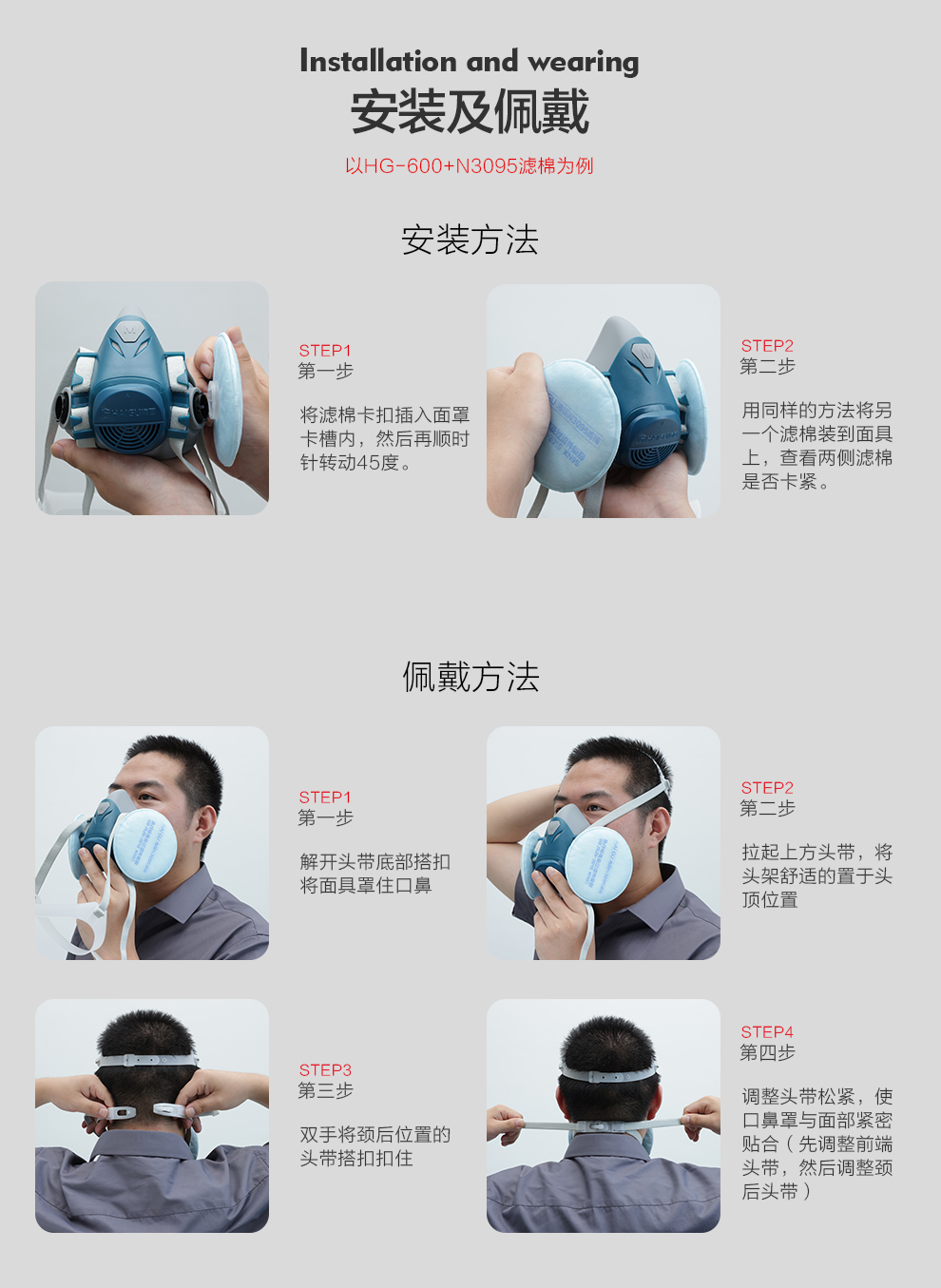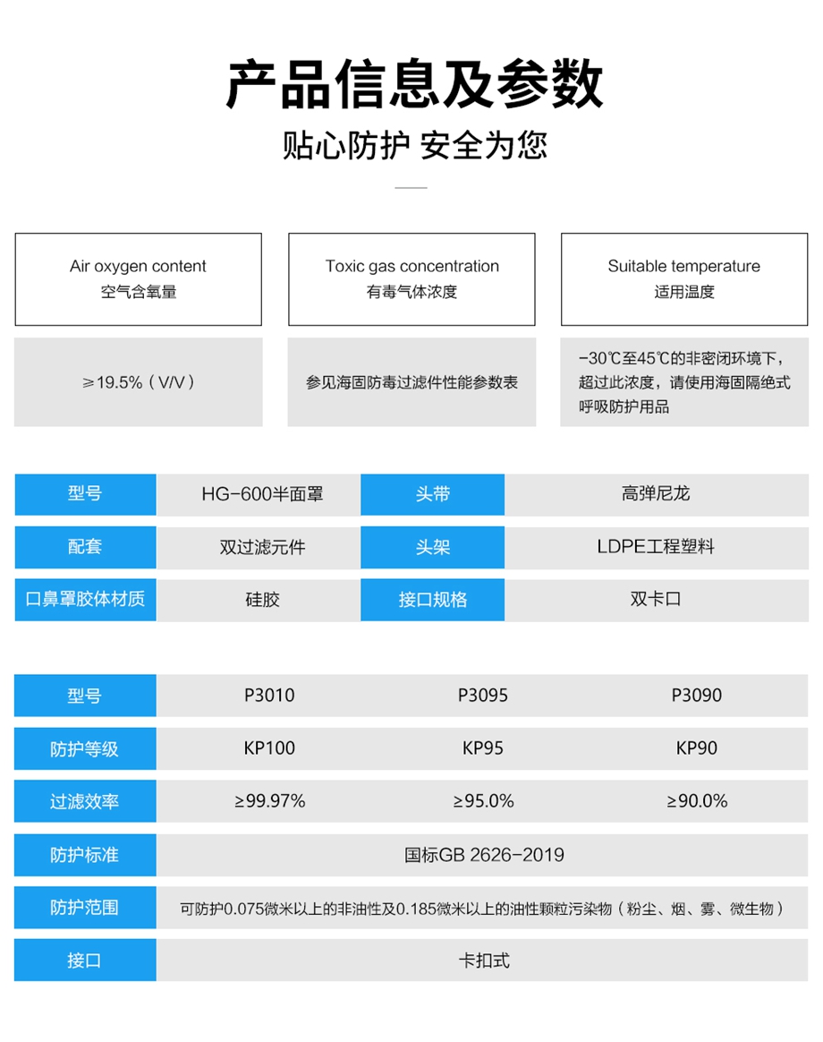 海固HG-600半面罩防毒面具+KP100/KP95/KP90油性非油性顆粒物濾棉