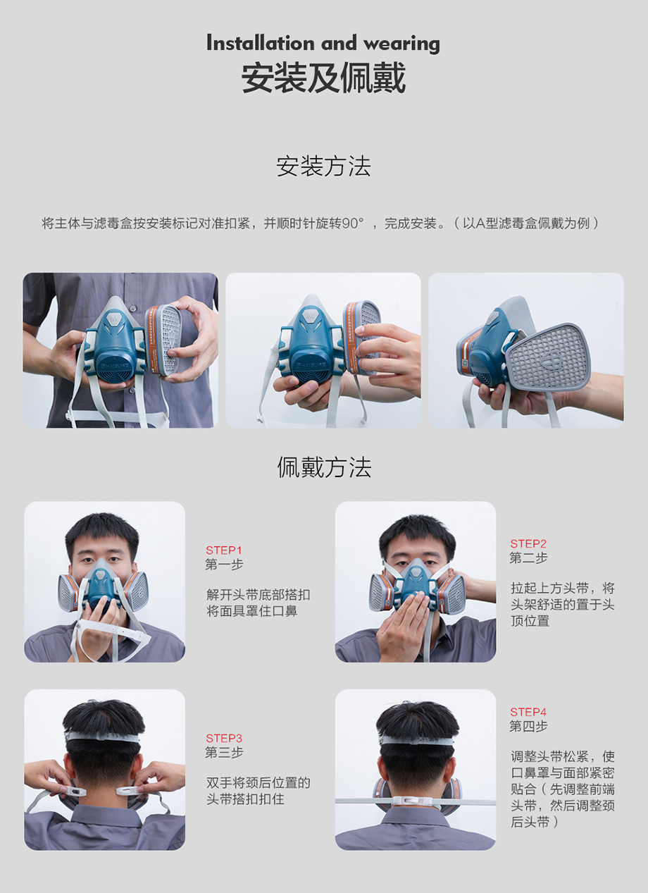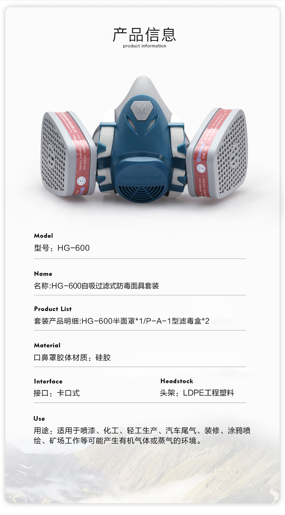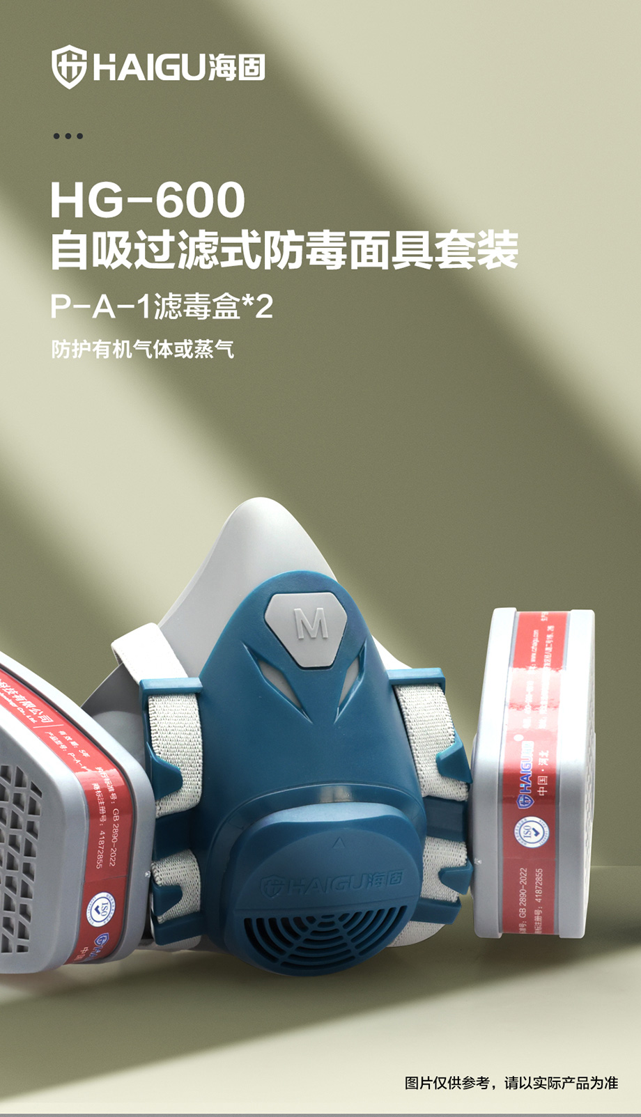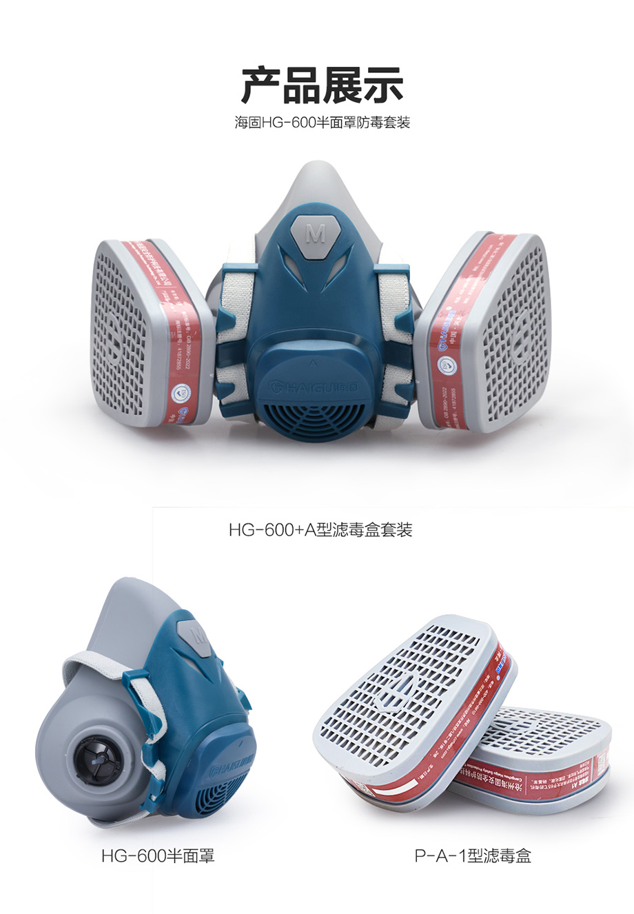 海固600半面罩+P-A-1濾毒盒 綜合防護有機氣體或蒸氣套裝