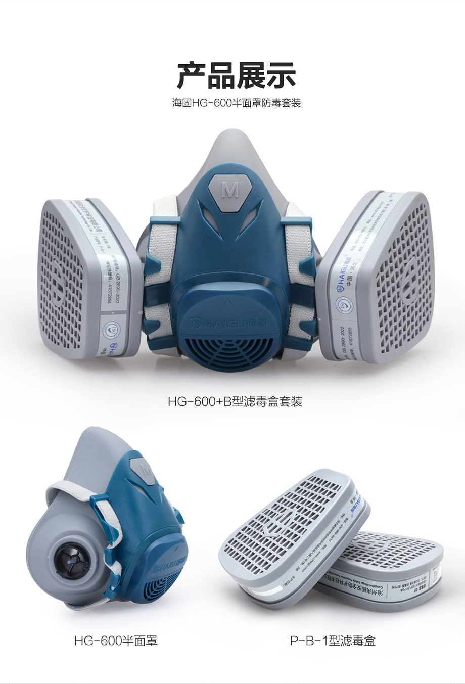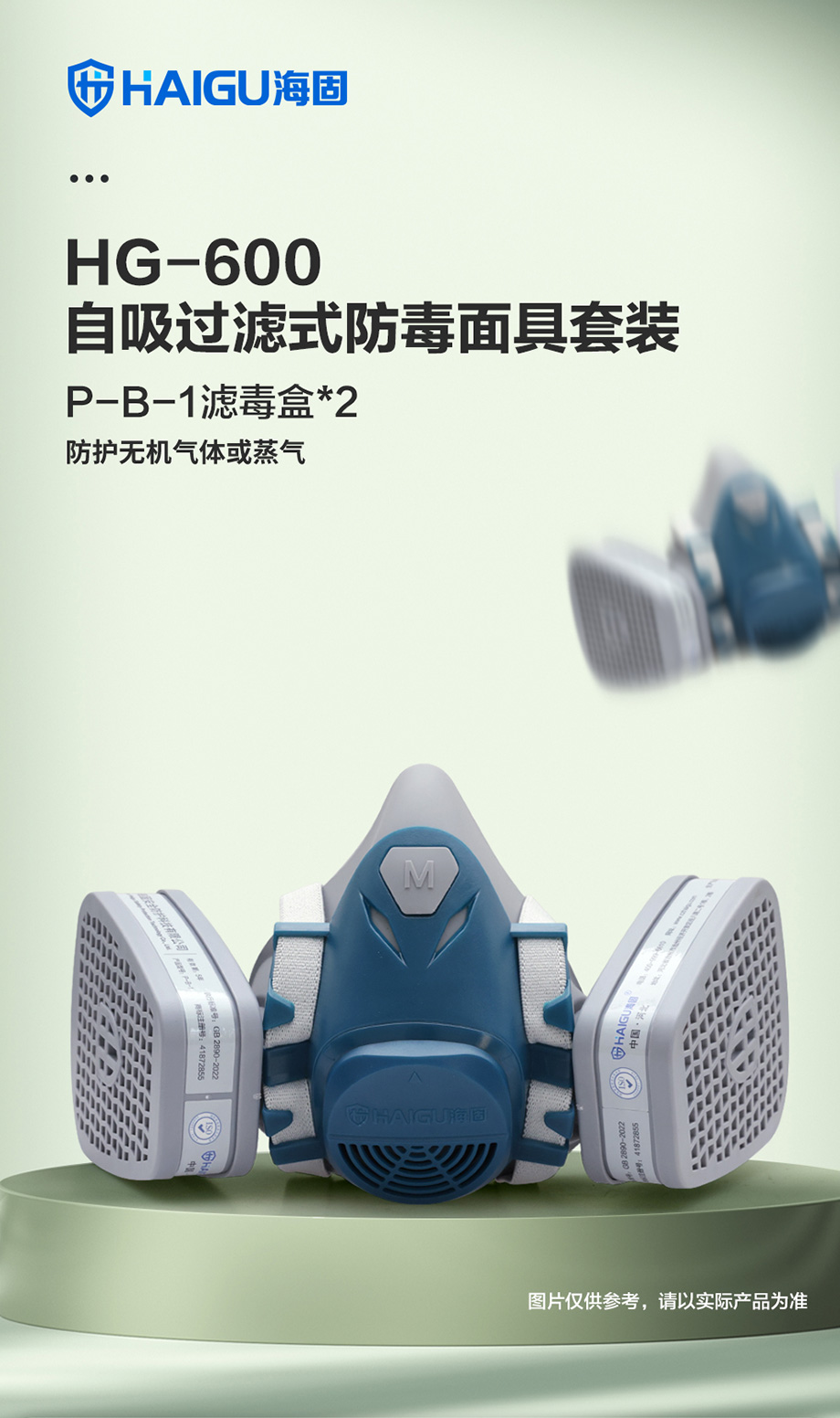 海固600半面罩+P-B-1濾毒盒 綜合防護無機氣體或蒸氣套裝