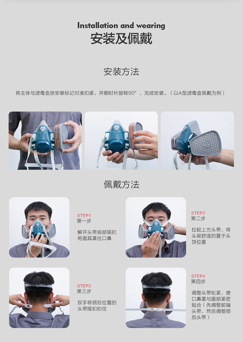 602半面罩防毒面具套裝