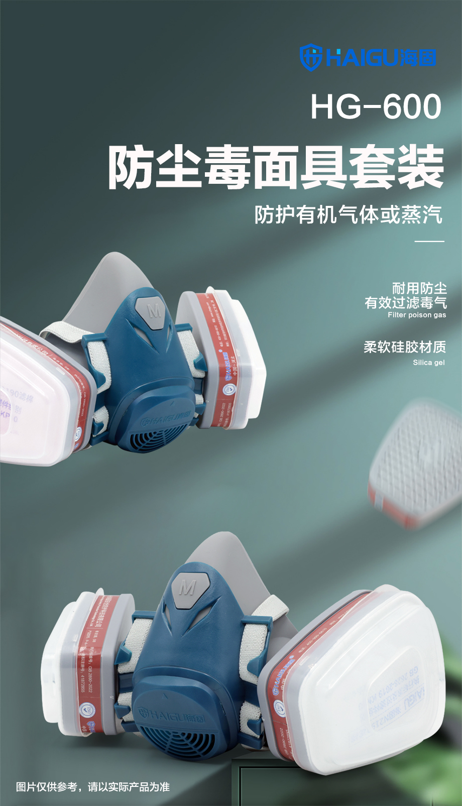 防塵毒套裝 海固600半面罩+P-A-1有機氣體濾毒盒+濾棉+濾棉蓋