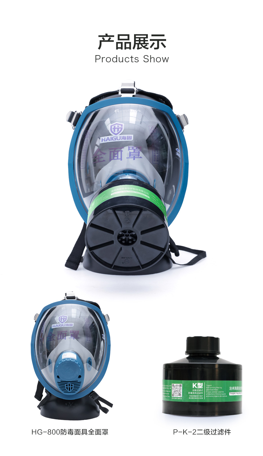 海固800全面罩+HG-ABS/P-K-2濾毒罐 氨氣防毒面具套裝
