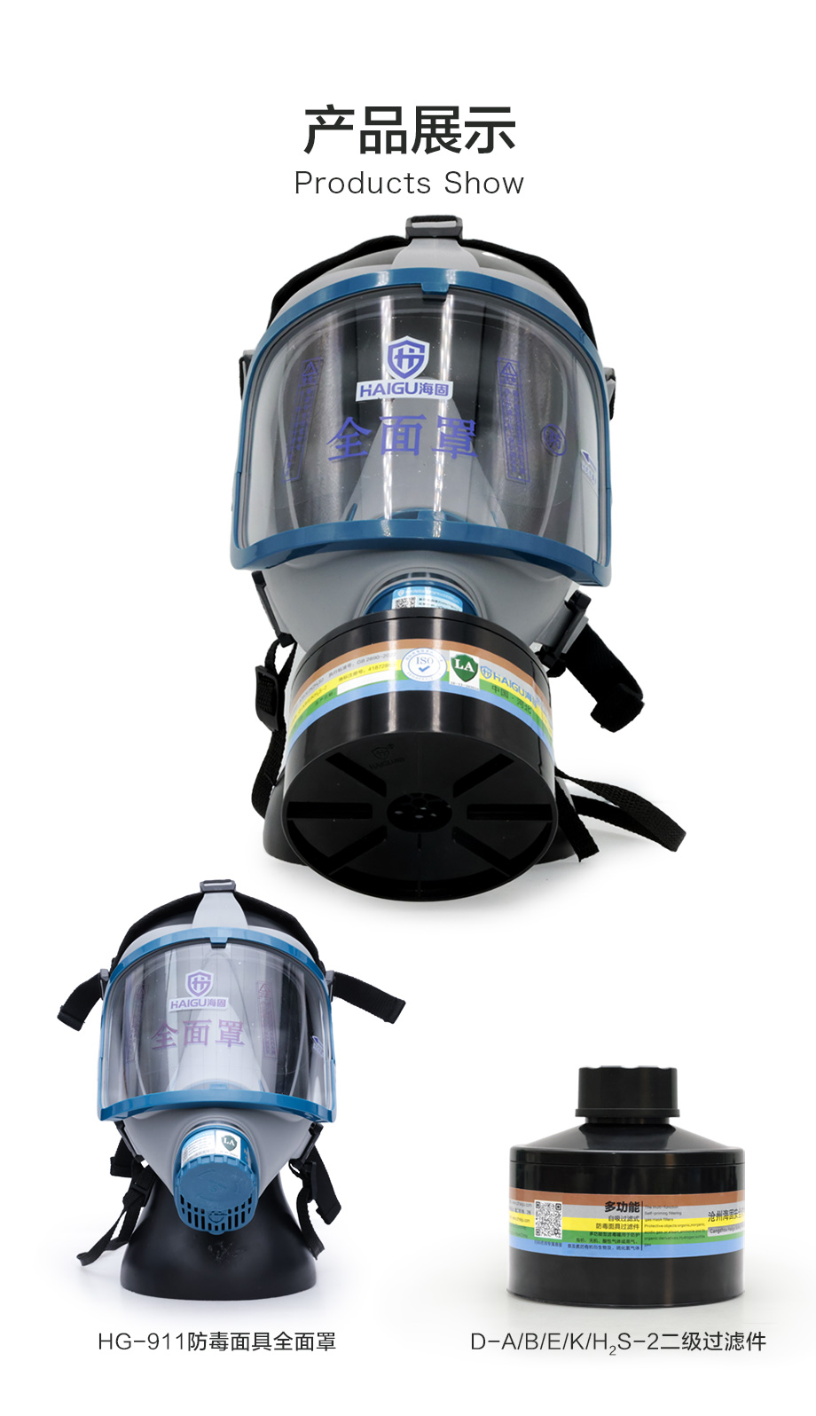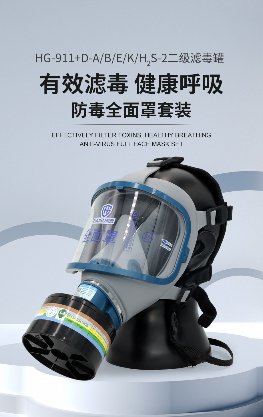 海固911全面罩+D-A/B/E/K/H2S-2濾毒罐 綜合防毒氣 活性炭面具