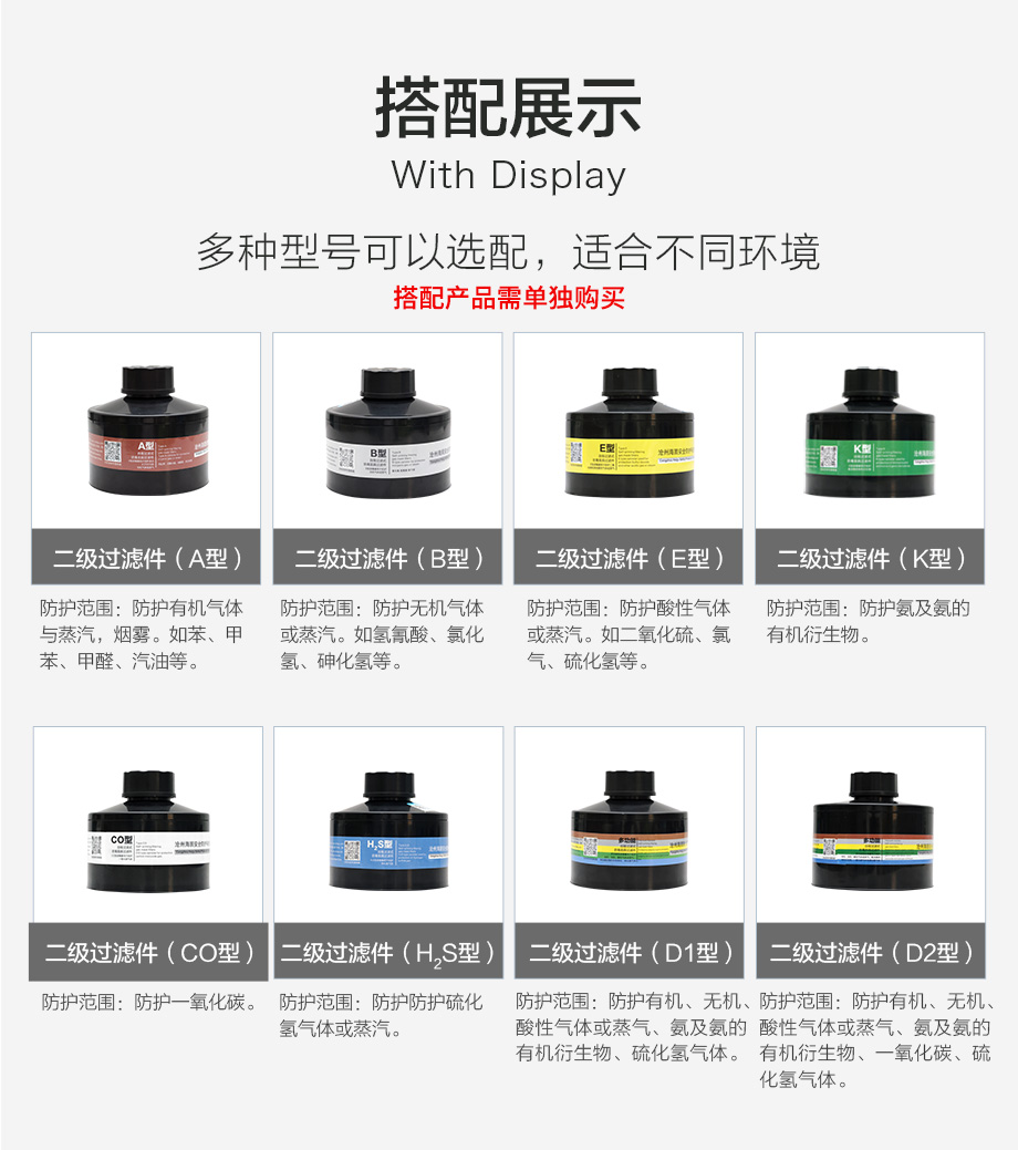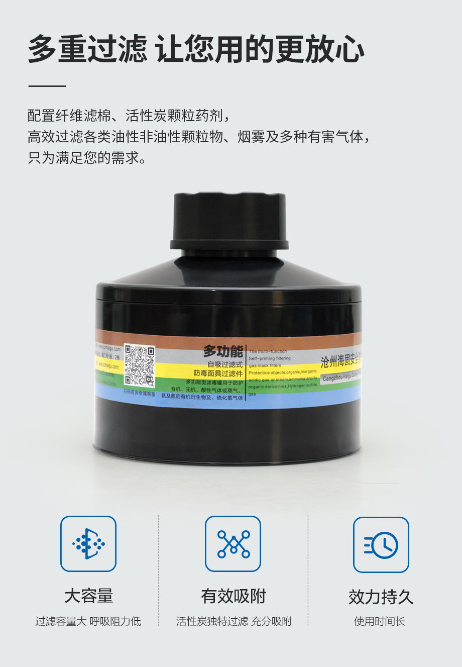 產(chǎn)品規(guī)格:寶藍(lán)灰硅膠/ABS濾毒罐