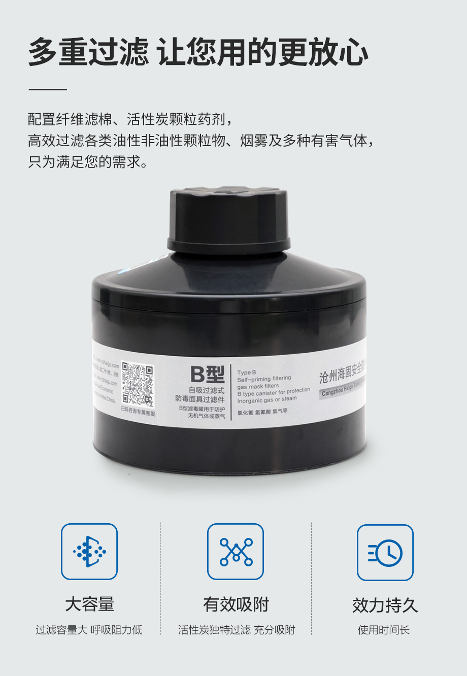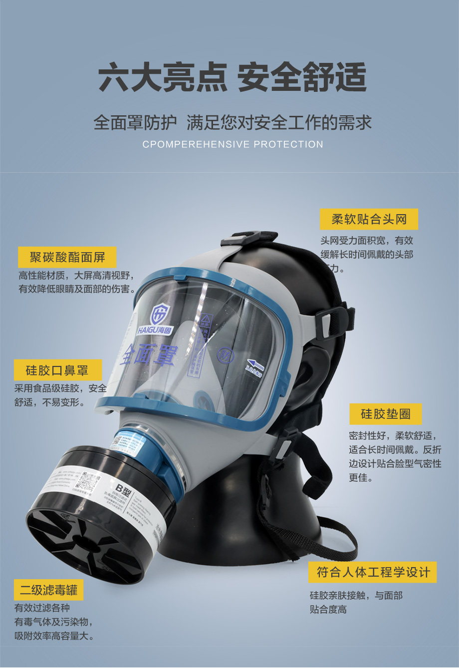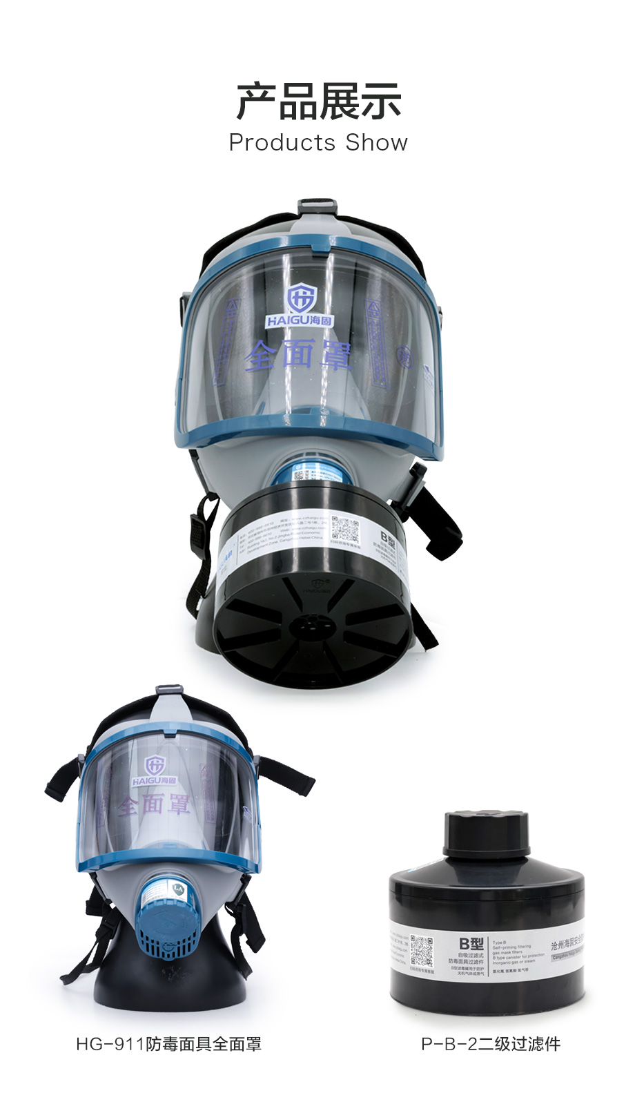 海固911全面罩+HG-ABS/P-B-2濾毒罐 防毒面具 無機(jī)氣體綜合防護(hù)