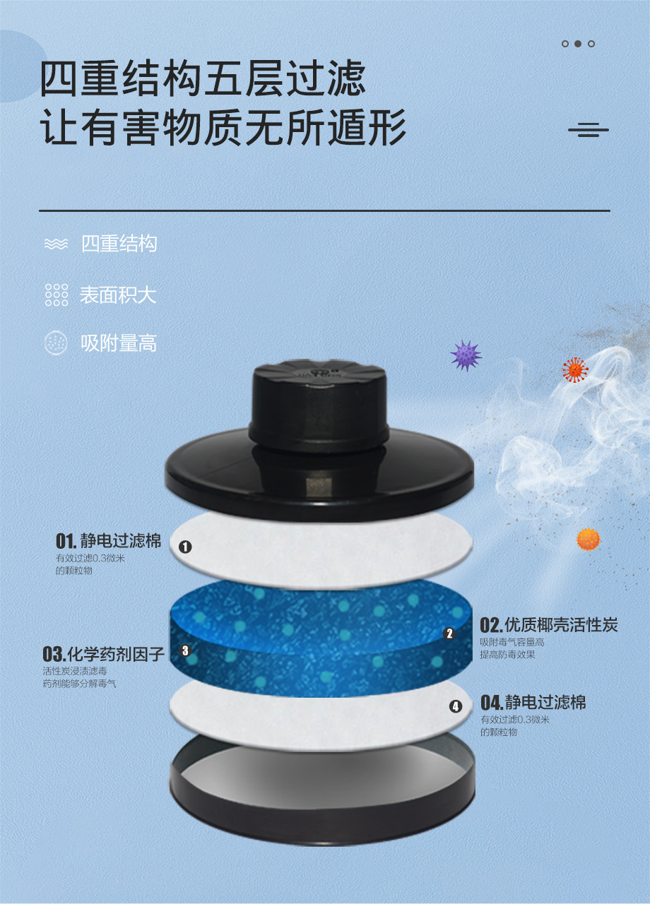 產(chǎn)品規(guī)格:寶藍(lán)灰硅膠/ABS濾毒罐