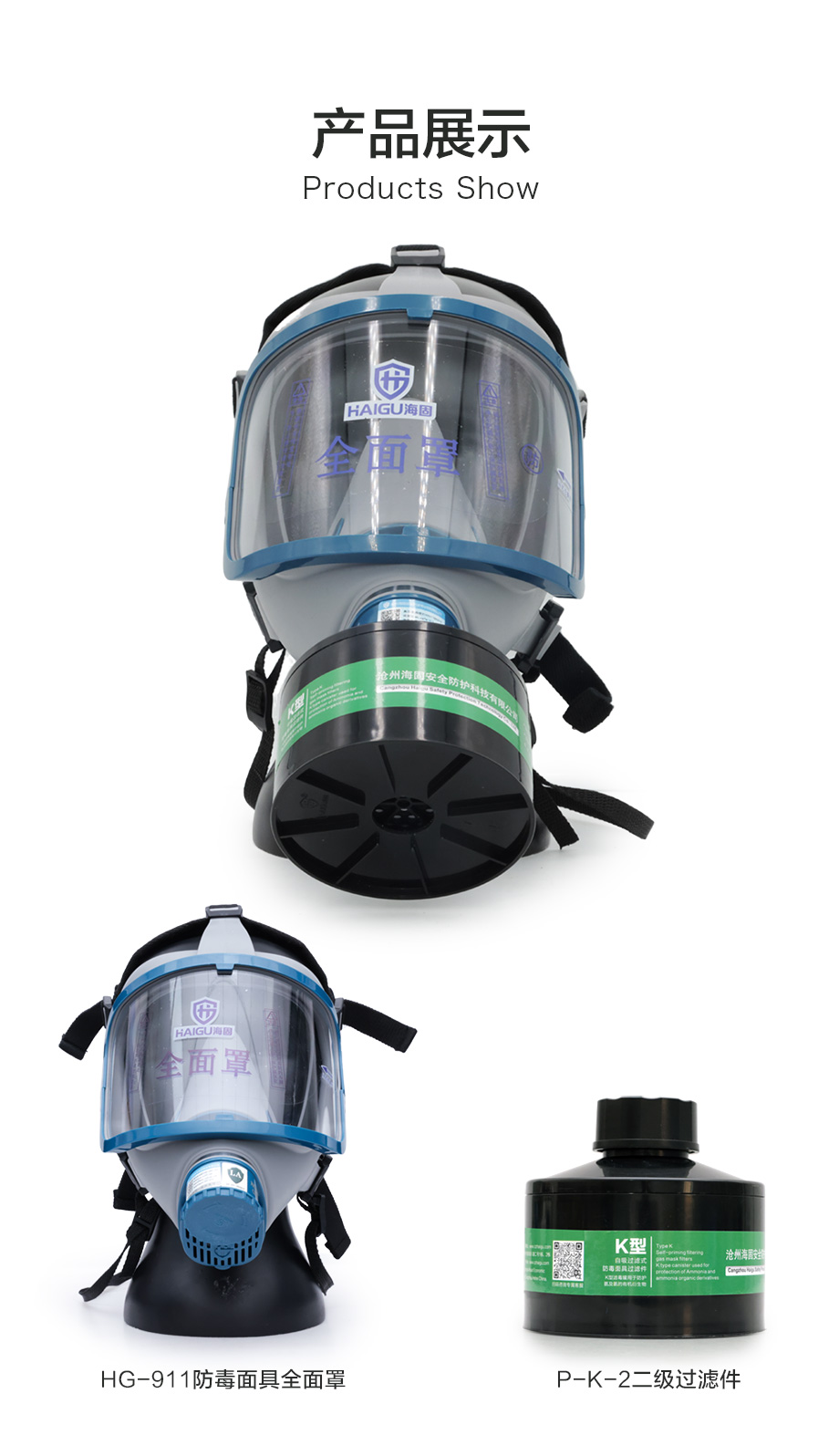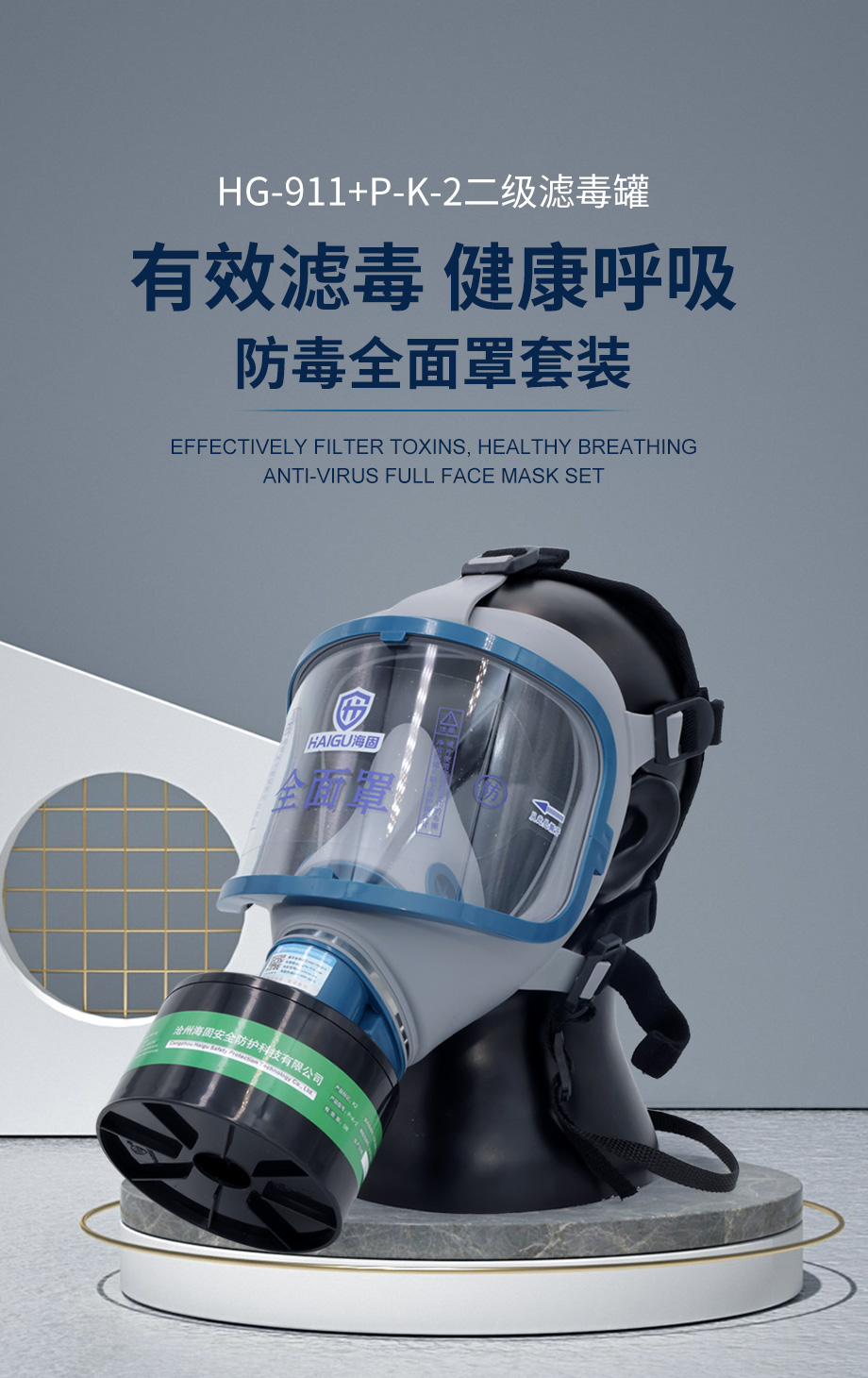 海固911全面罩+HG-ABS/P-K-2濾毒罐 氨氣全面罩防毒面具
