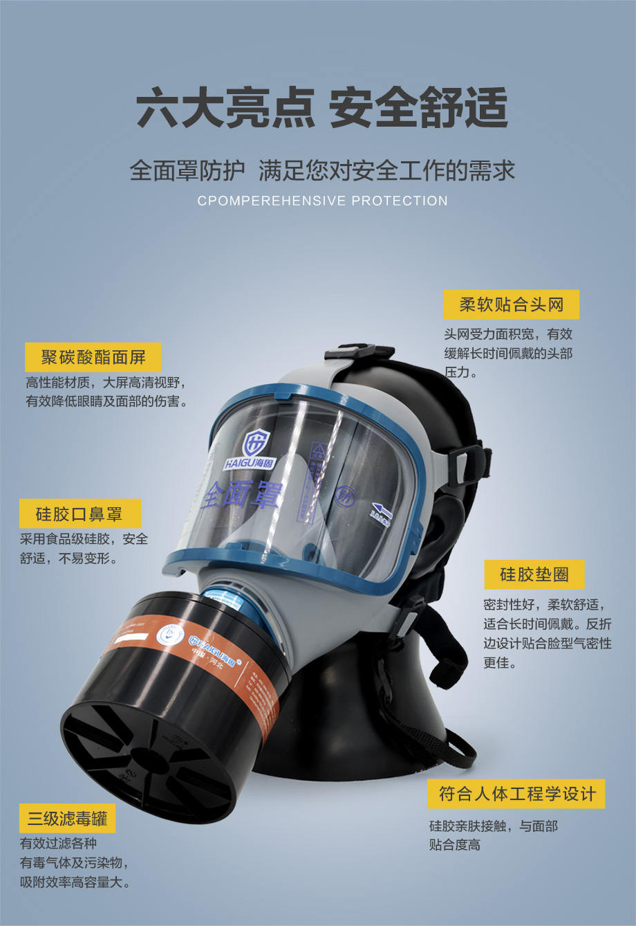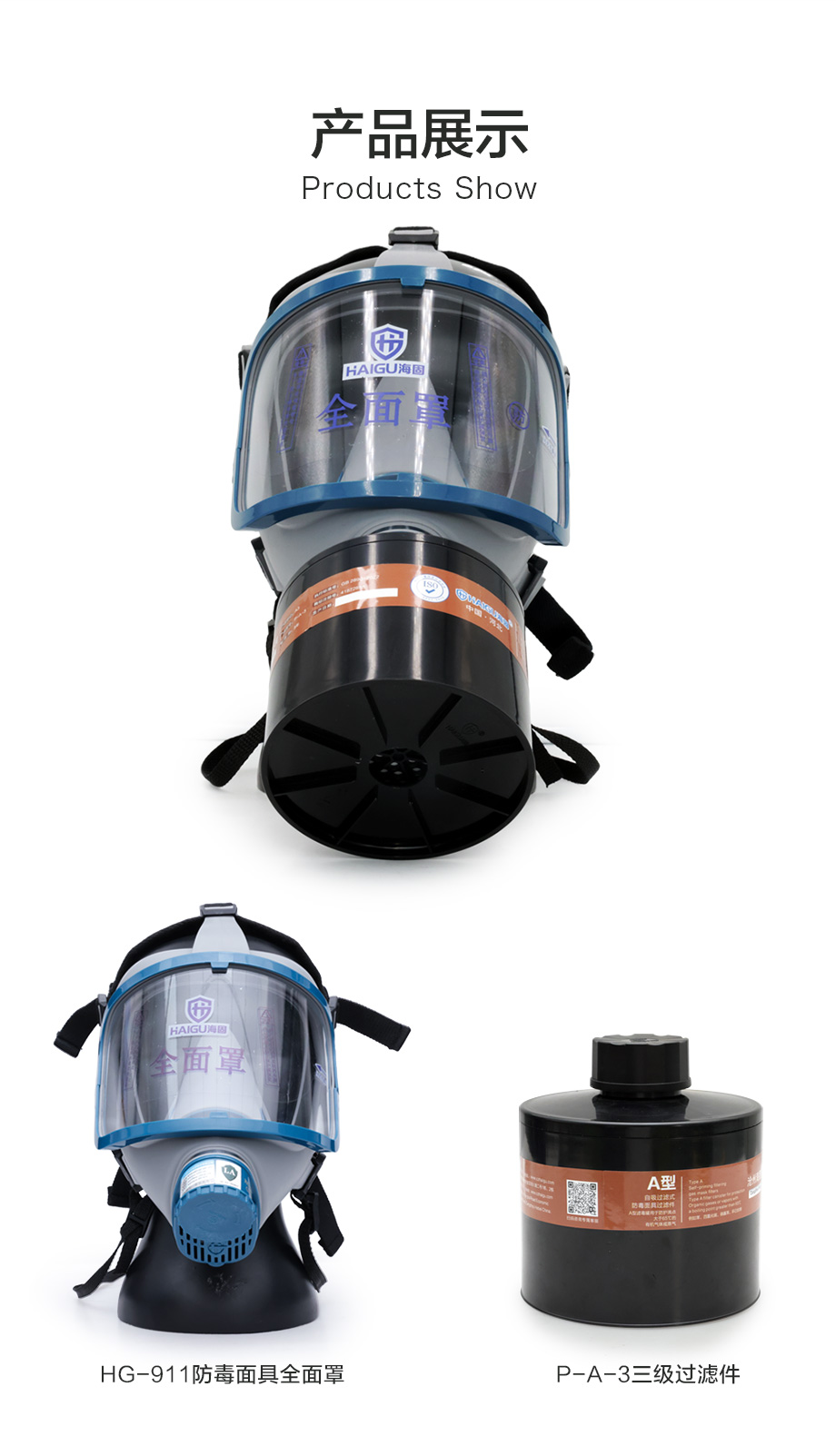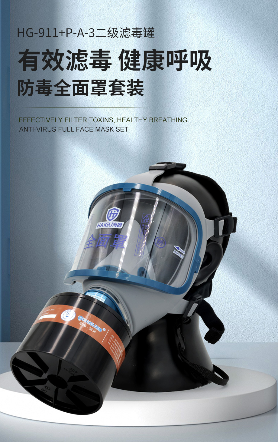 海固911全面罩+HG-ABS/P-A-3濾毒罐 活性炭防毒面具 甲醛 醇類