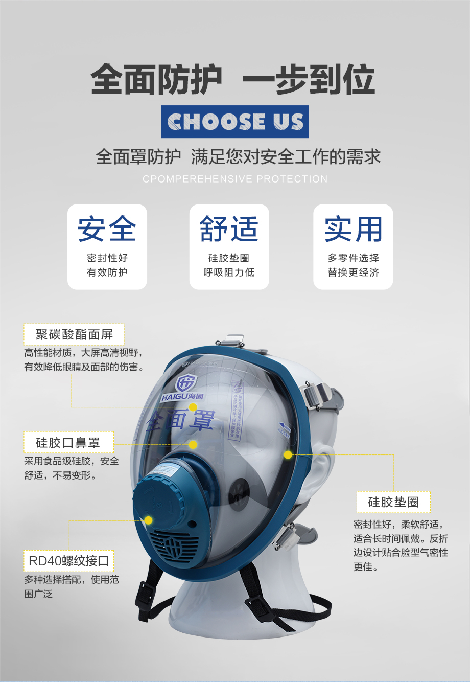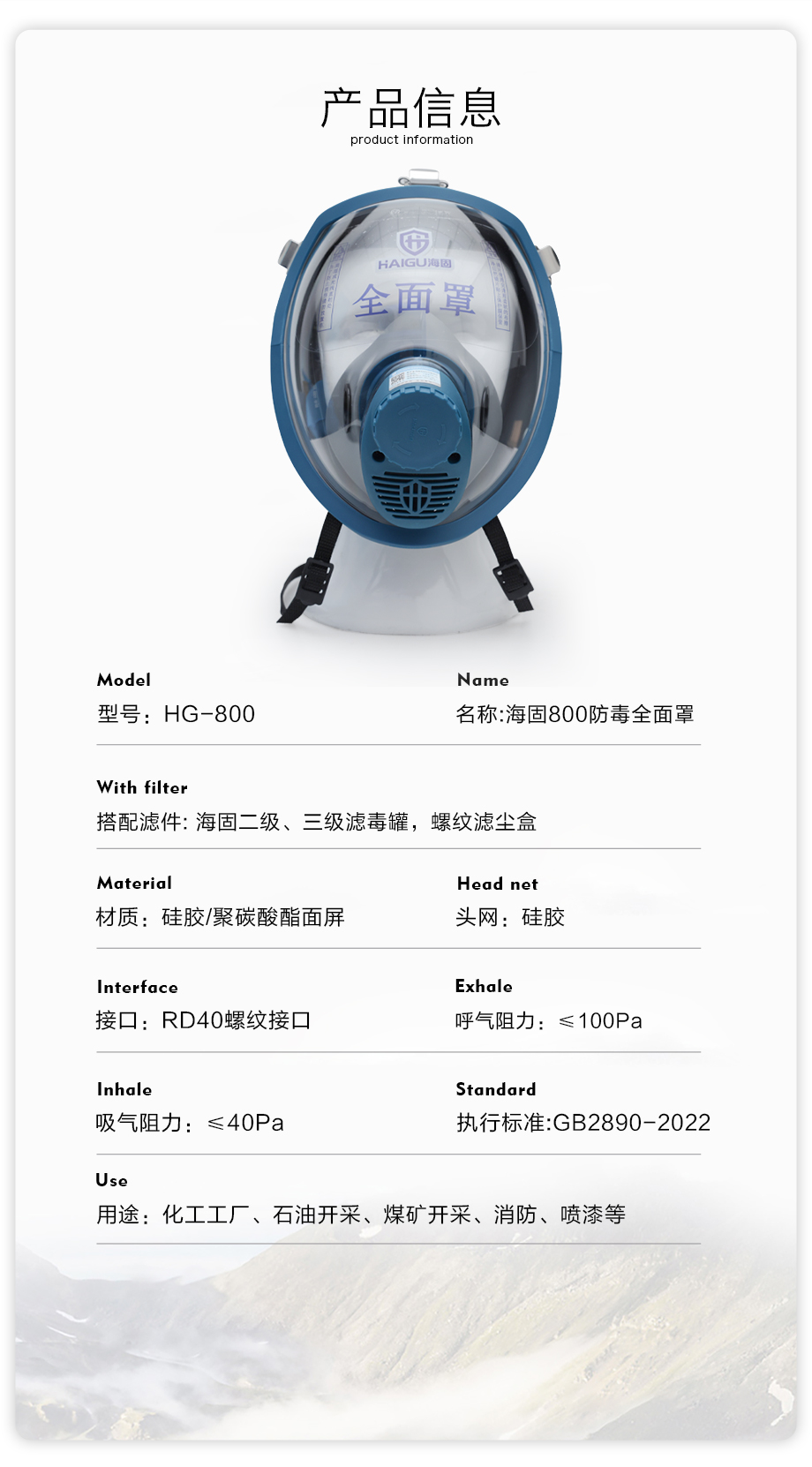 海固HG-800自吸過濾式防毒面具全面罩 硅膠頭網(wǎng)款