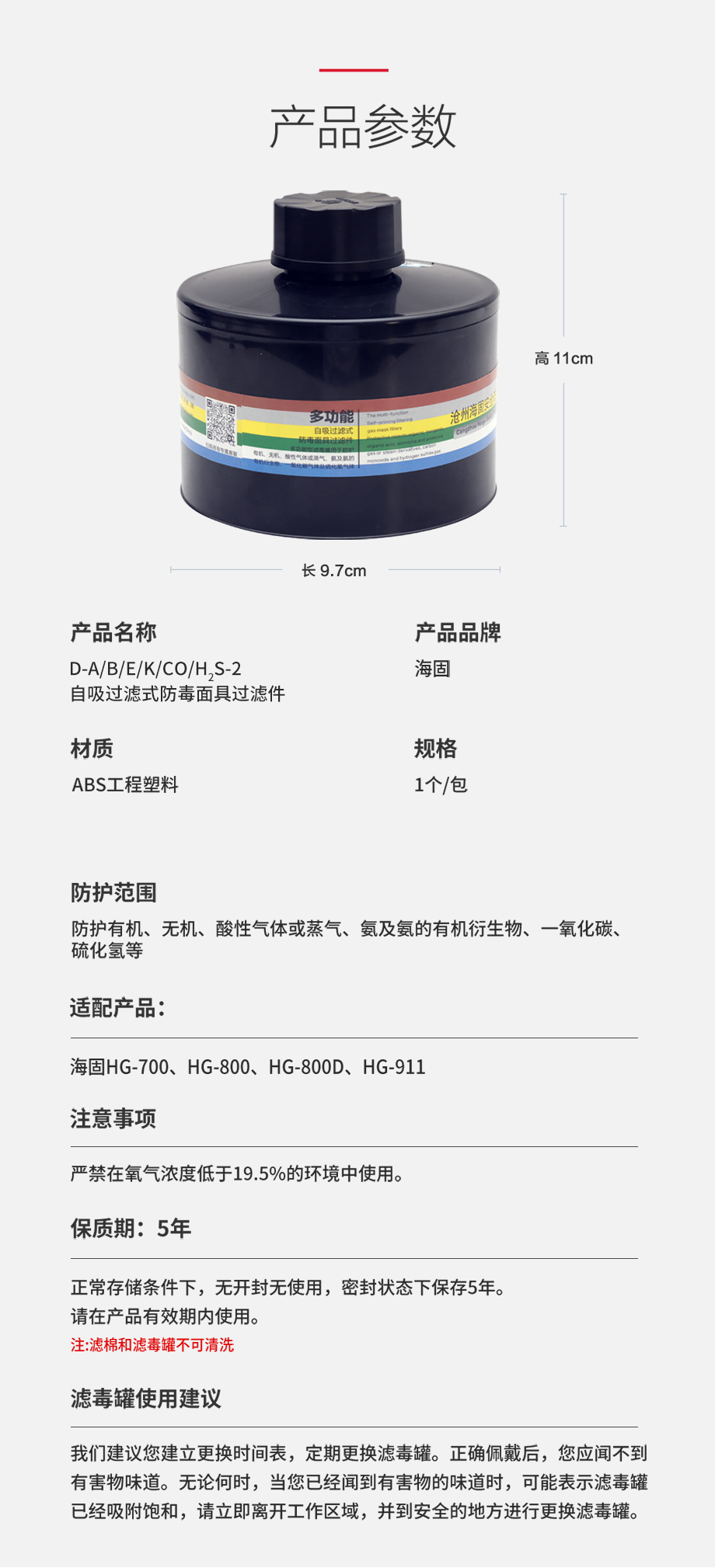 海固D-A/B/E/K/CO/H2S-2濾毒罐 多功能綜合防毒