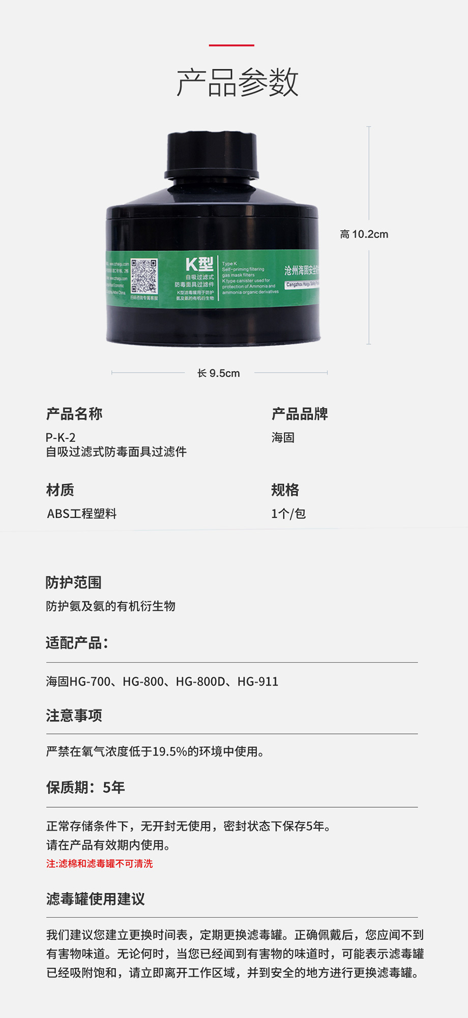 海固P-K-2級濾毒罐 氨及氨的有機(jī)衍生物防護(hù)