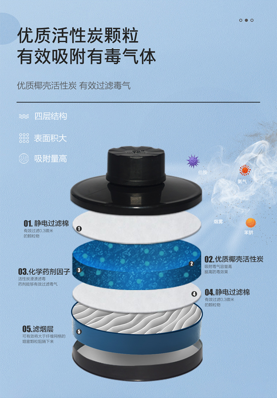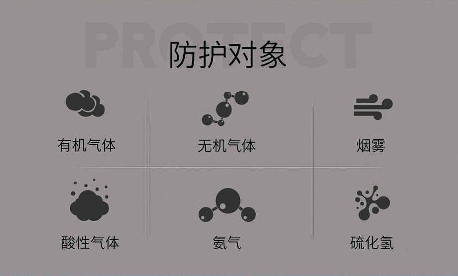 防護范圍:主要防護有機、無機氣體、酸性氣體、氨氣、硫化氫氣體及煙霧