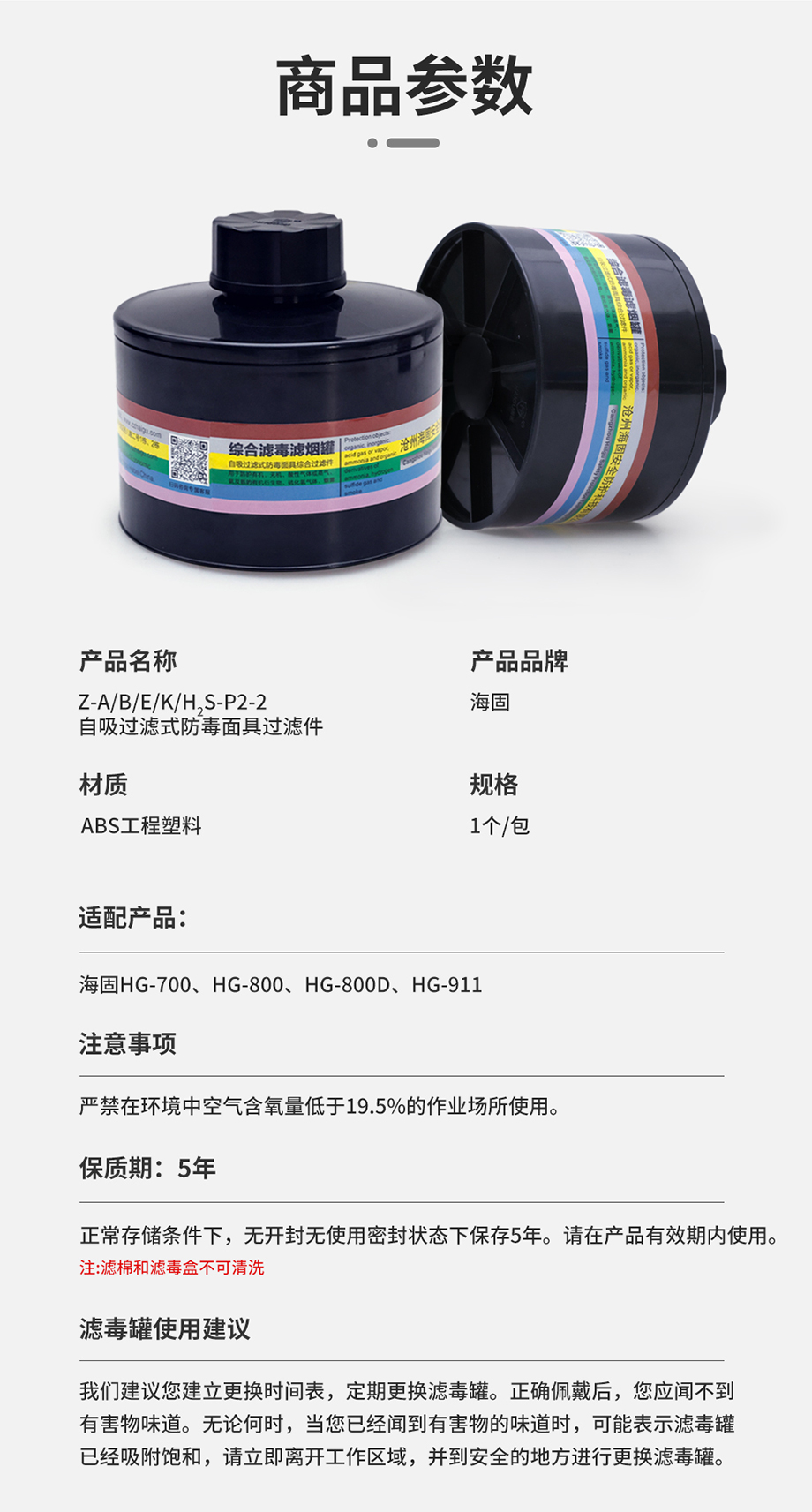 海固Z-A/B/E/K/H2S-P2-2/P3-2綜合濾毒濾煙罐