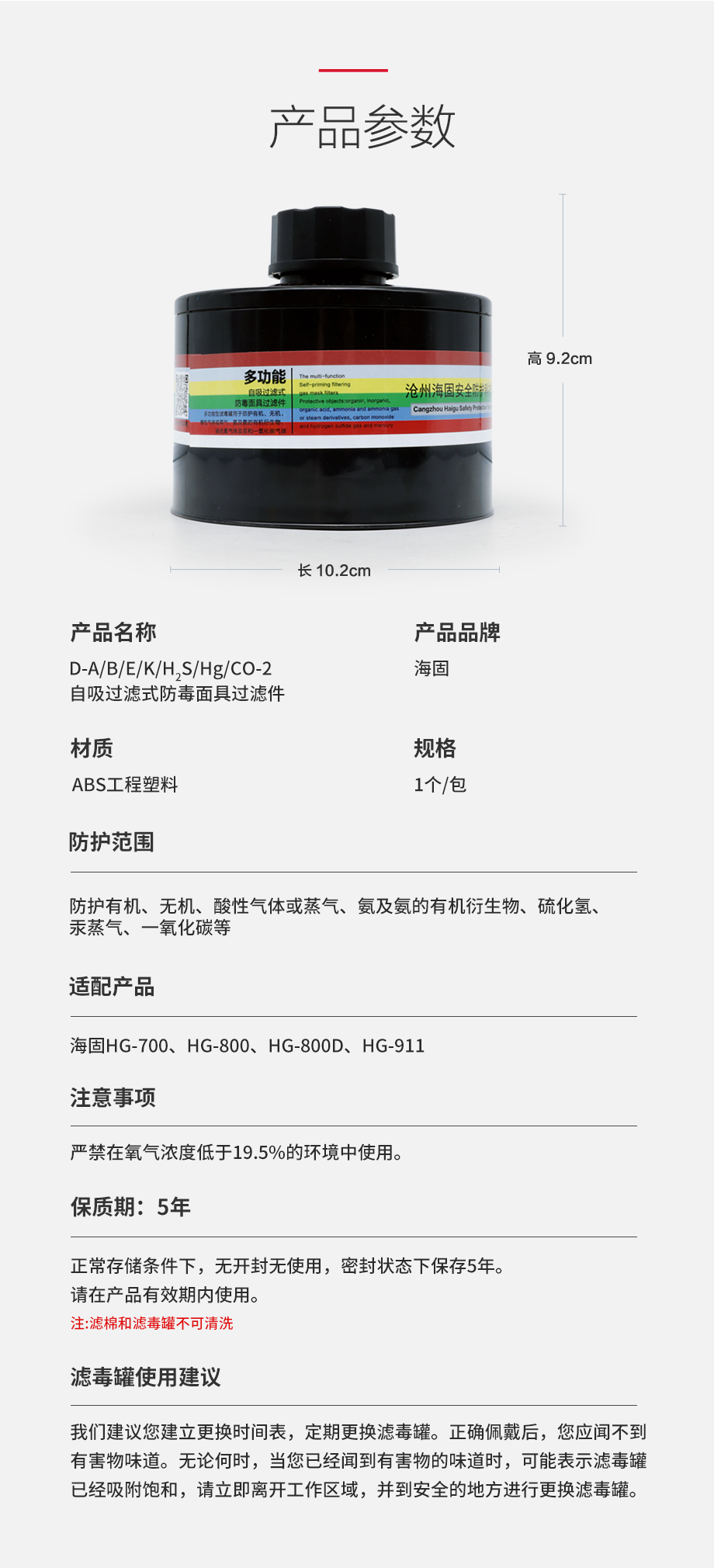 海固 D-A/B/E/K/H2S/Hg/CO-2 多氣體防護(hù)濾毒罐