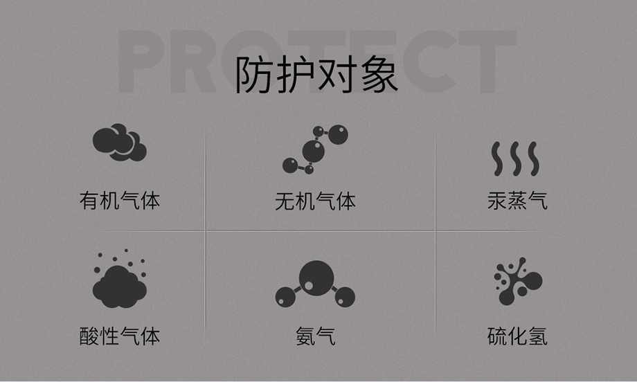 防護(hù)范圍:防護(hù)有機(jī)氣體、無(wú)機(jī)氣體、酸性氣體、氨氣、硫化氫、汞蒸氣