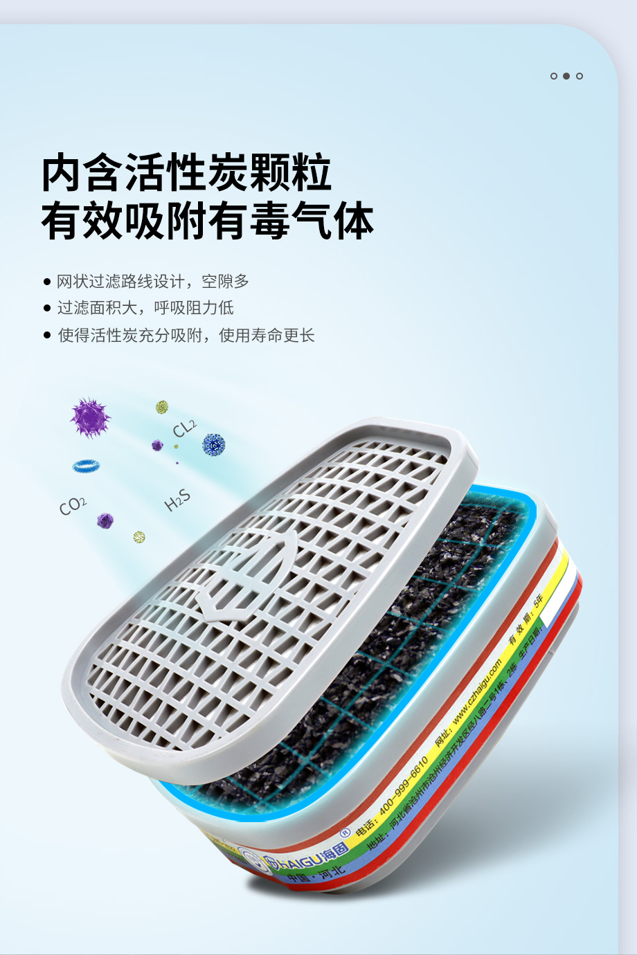 海固多功能D-A/B/E/K/H2S-Hg-1濾毒盒 有機(jī)無(wú)機(jī)氣體、酸性氣體、氨氣、硫化氫、汞等多種氣體防護(hù)