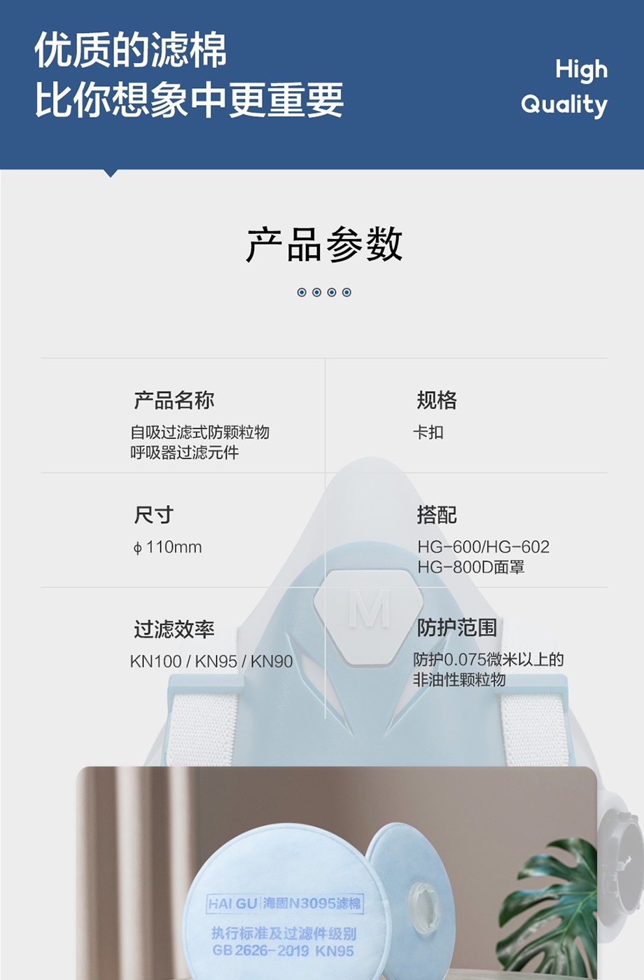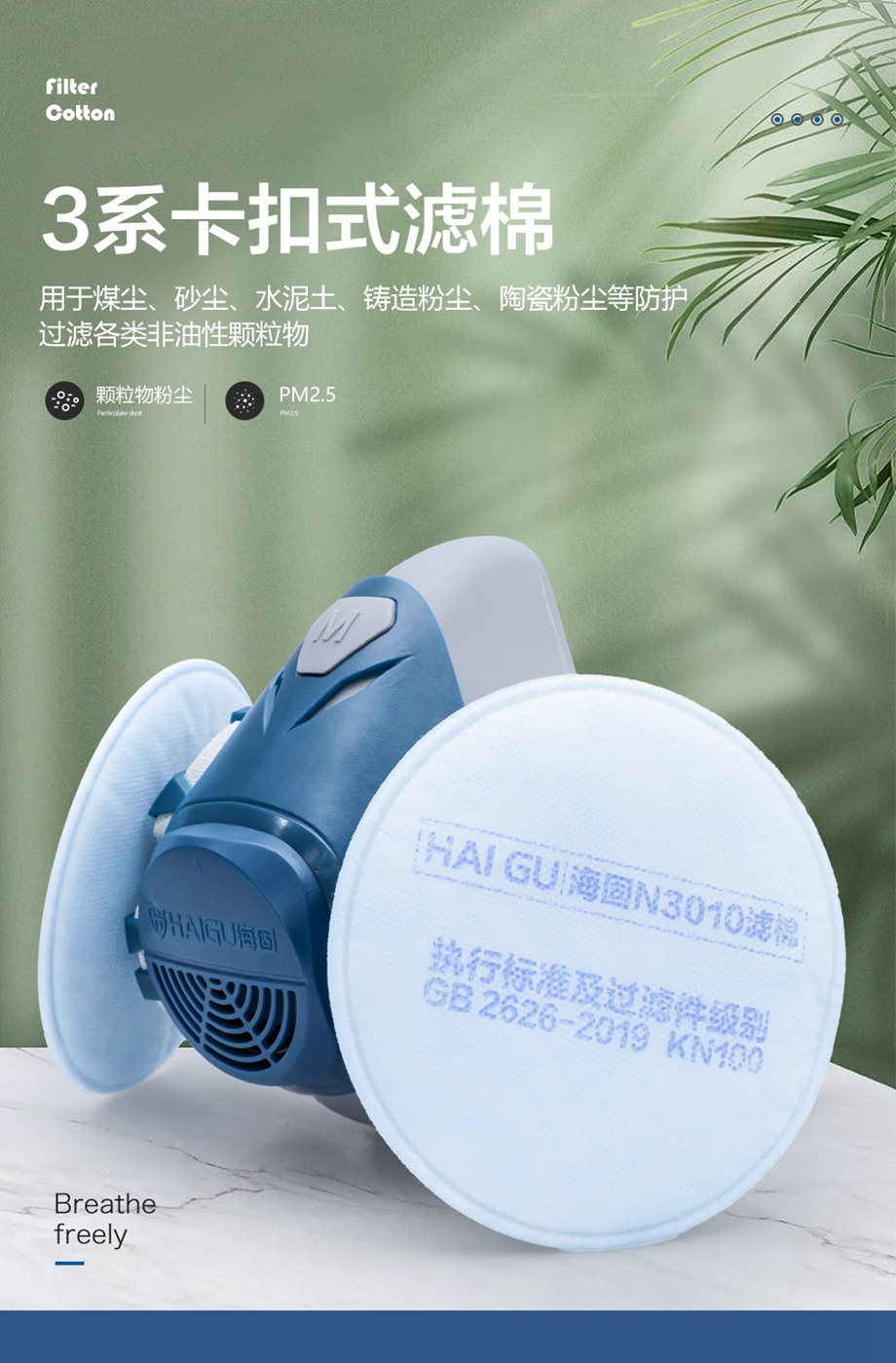海固3系KN卡扣濾棉 KN100/KN95/KN90非油性顆粒物濾棉 防塵顆粒物濾棉