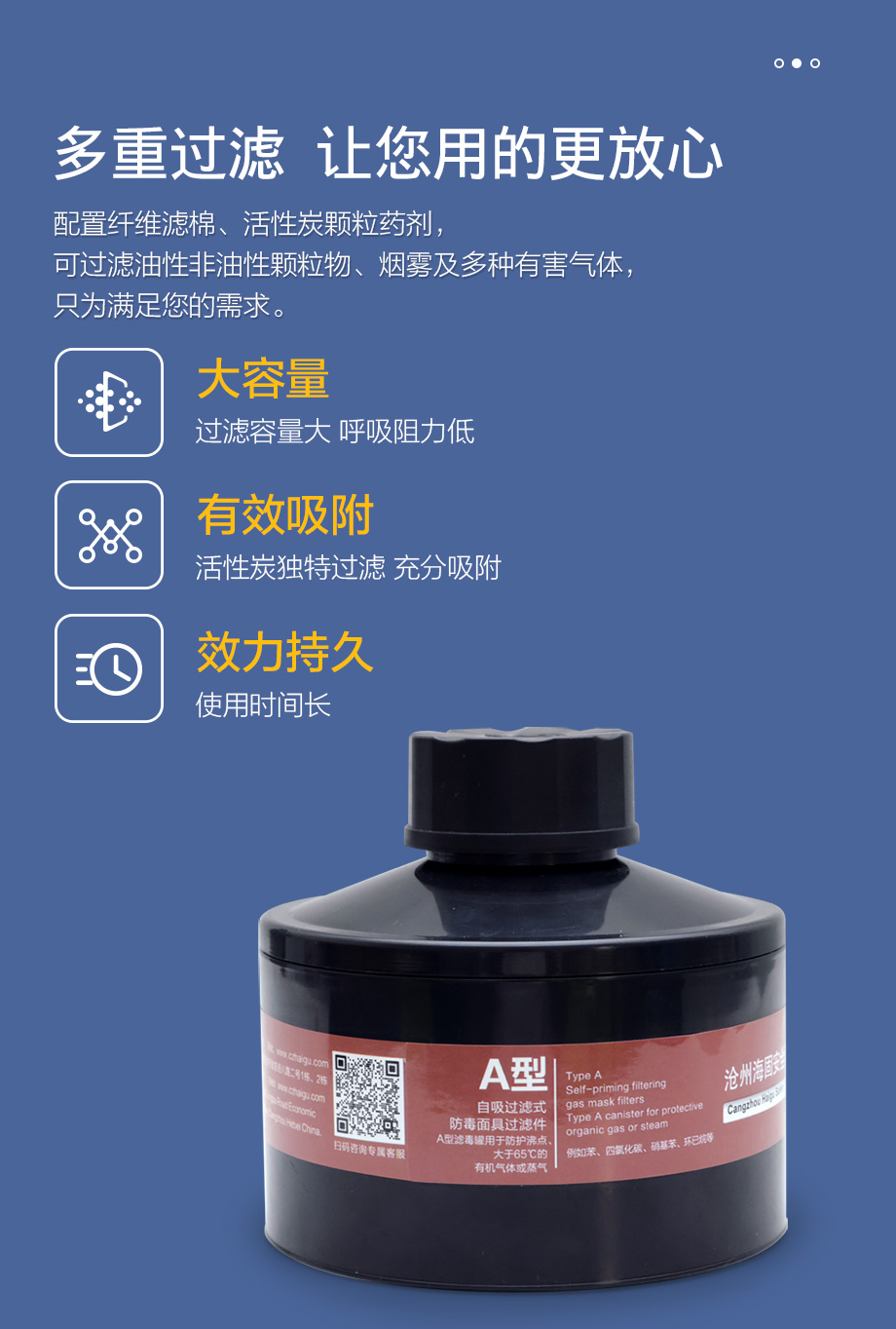 海固700全面罩+HG-ABS/P-A-2濾毒罐 活性炭防毒面具 甲醛 醇類
