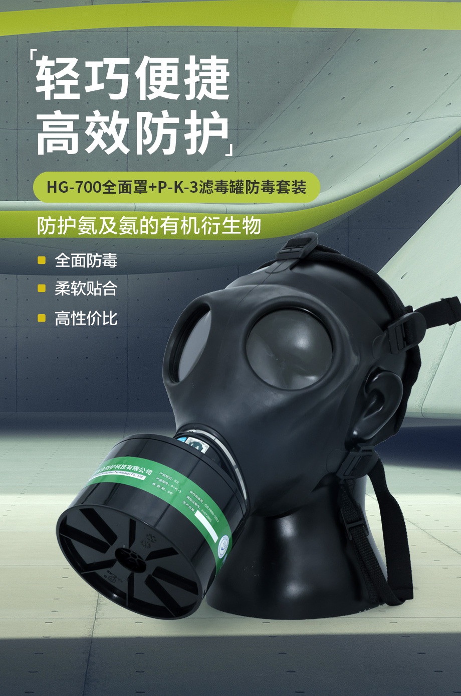 海固700全面罩+P-K-3濾毒罐 氨氣防護(hù)