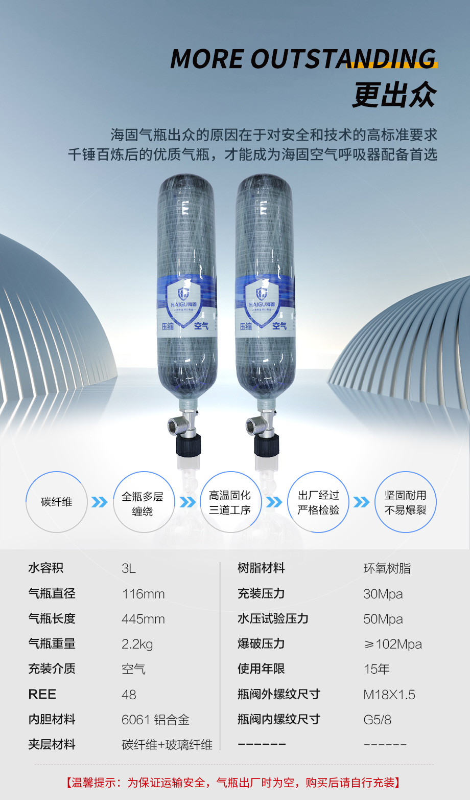 海固3L正壓式空氣呼吸器碳纖維復(fù)合氣瓶
