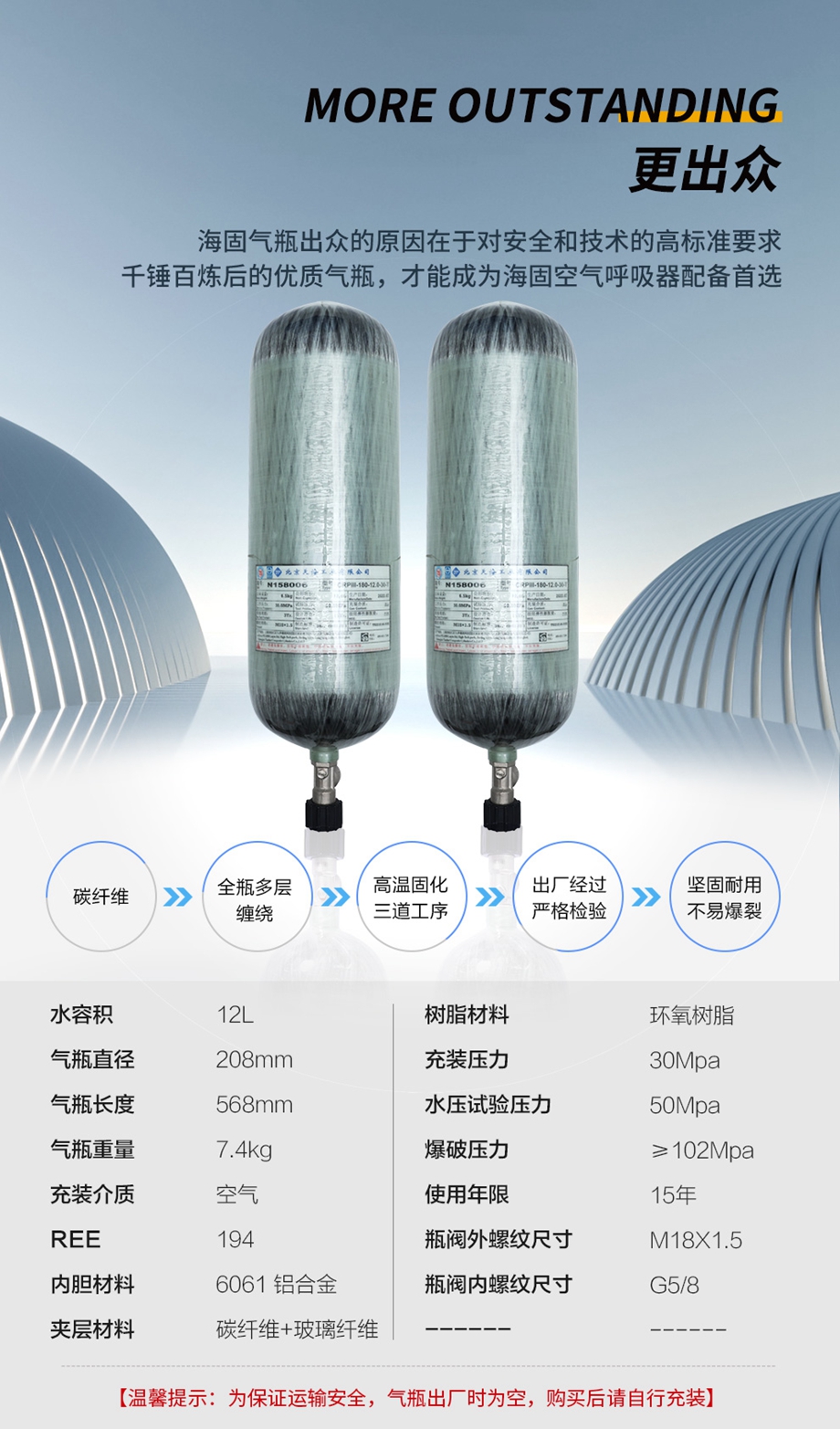 海固HG-RHZKF/12F正壓式空氣呼吸器碳纖維復合氣瓶