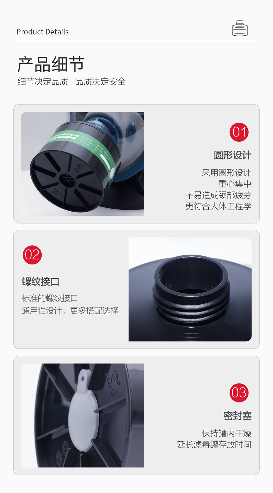 產(chǎn)品規(guī)格:ABS濾毒罐