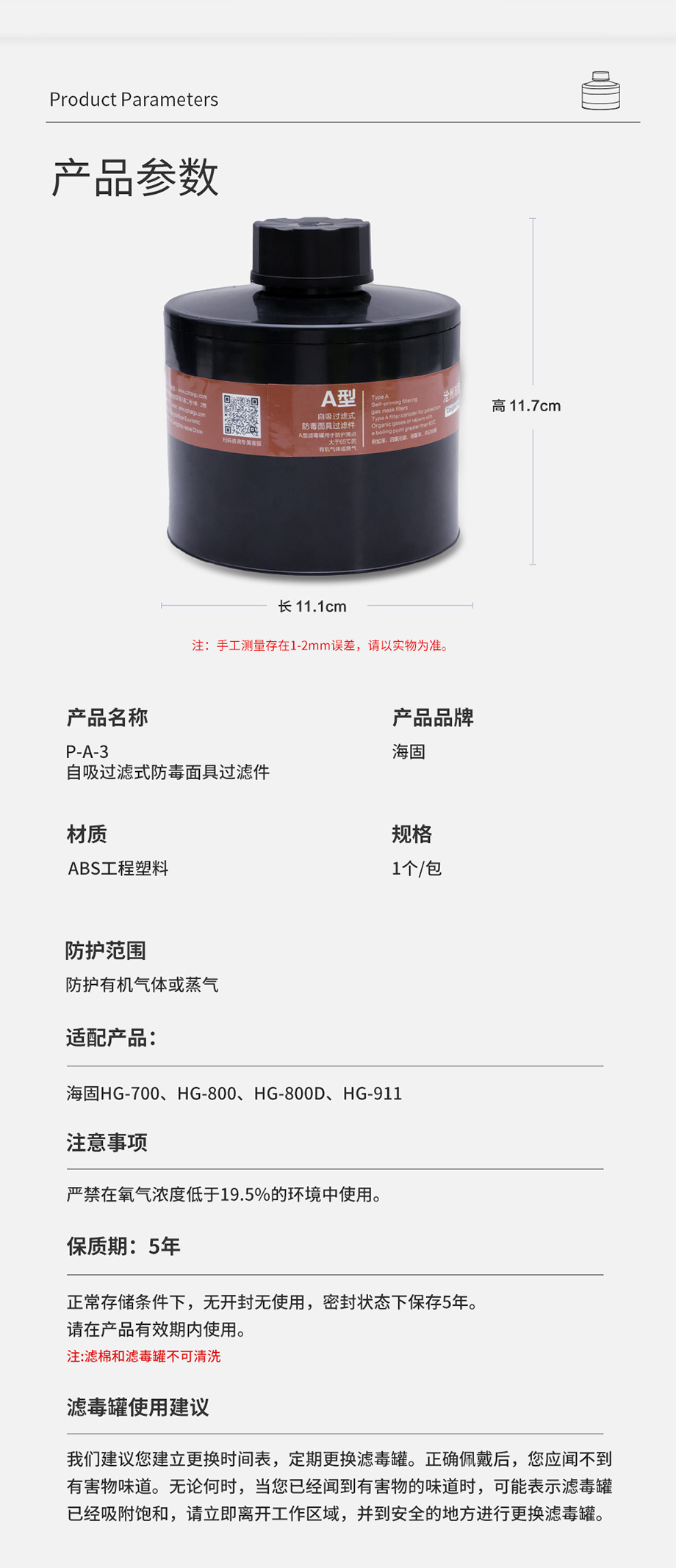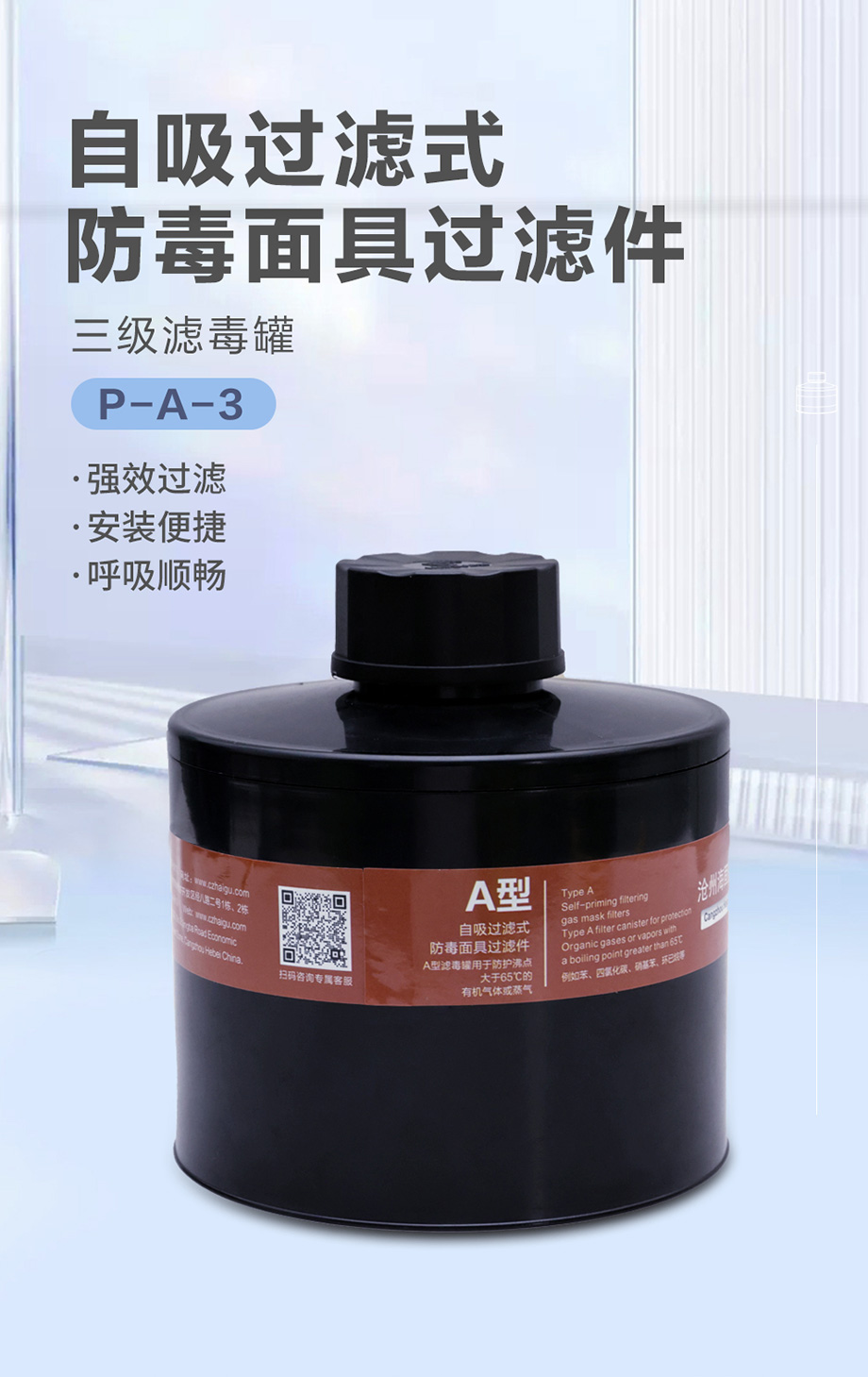 海固P-A-3濾毒罐 有機(jī)氣體苯、四氯化碳、硝基苯、環(huán)己烷等三級濾毒罐