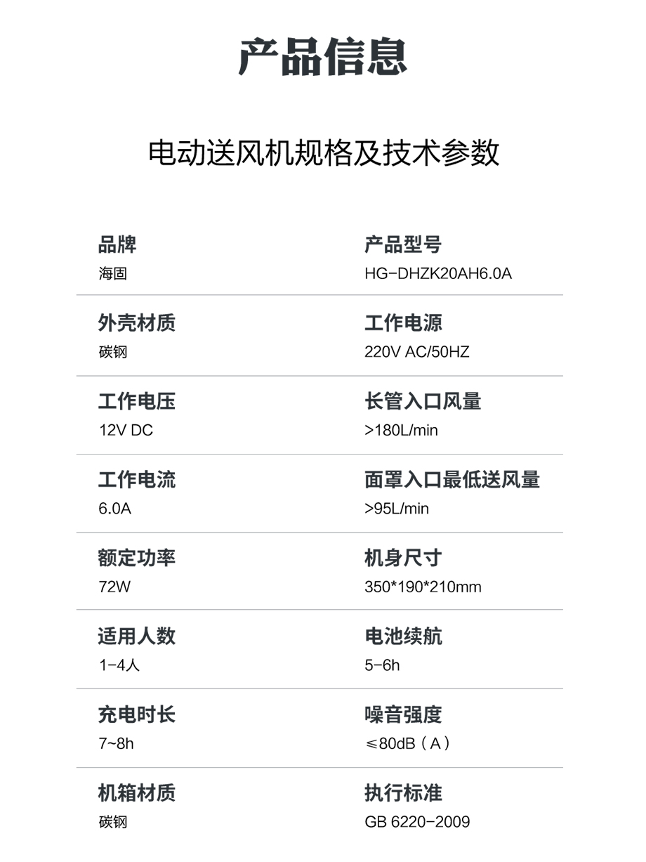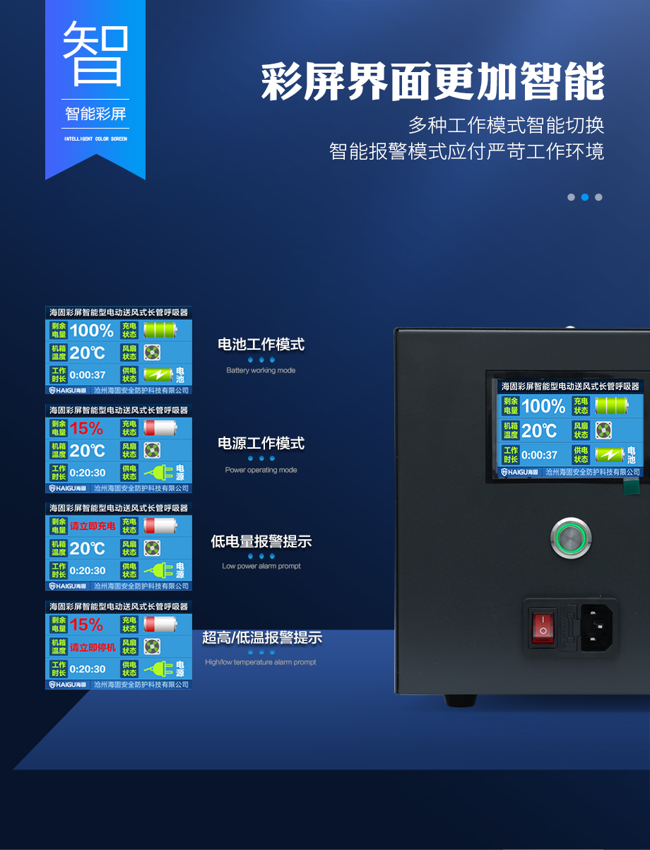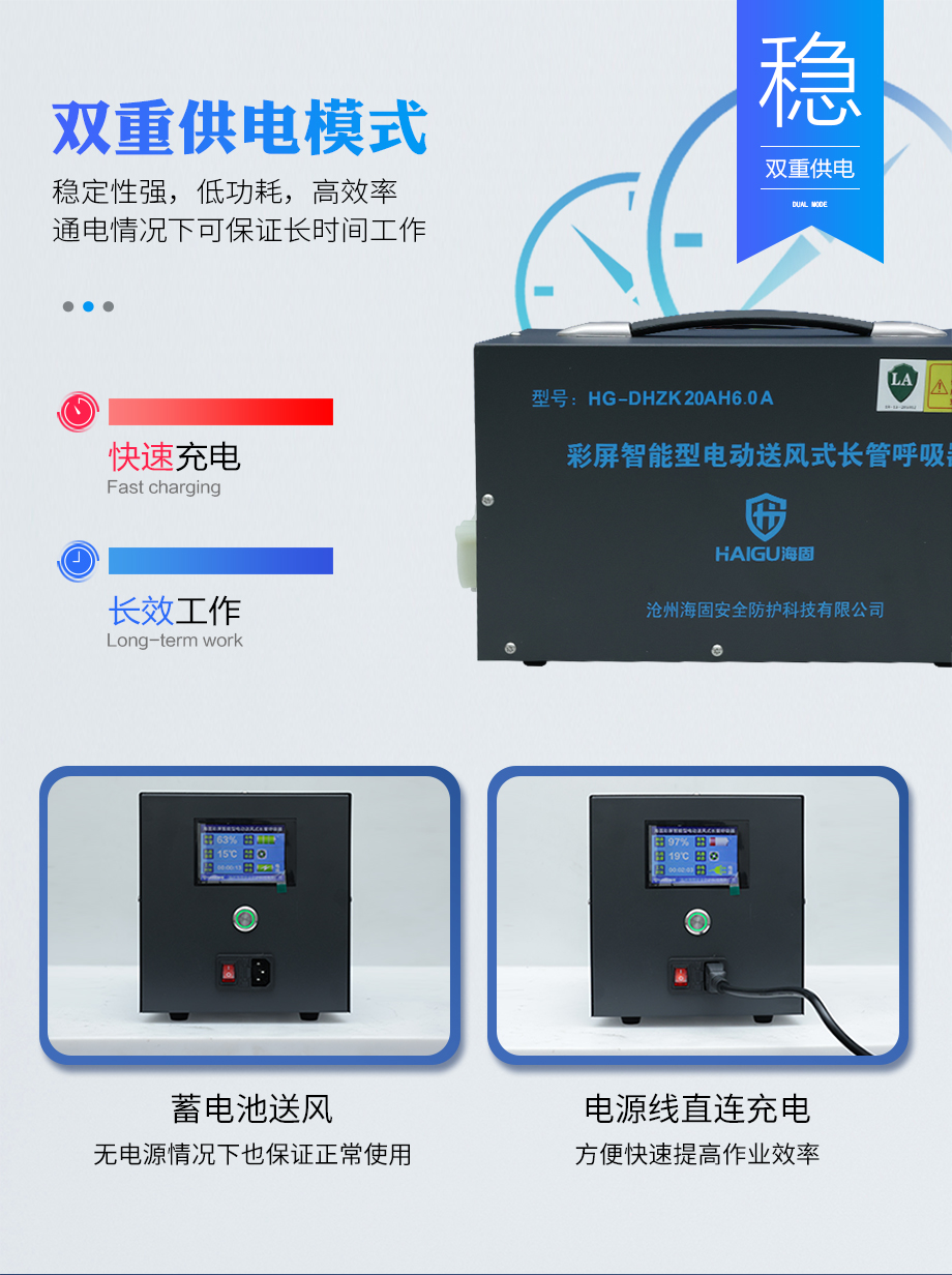 海固HG-DHZK20AH6.0A彩屏智能型 雙人 全面罩 電動(dòng)送風(fēng)式長管呼吸器