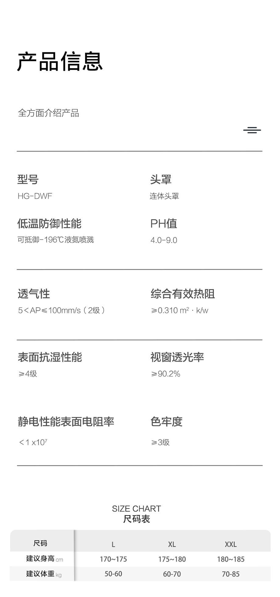 海固低溫防護服 防液氮飛濺 防靜電 連體帶背囊防護服