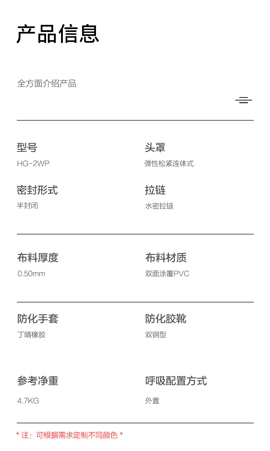 海固HG-2WP噴射液密型化學(xué)防護(hù)服 二級(jí)半封閉酸堿類化學(xué)品防護(hù)(不含防毒面具)