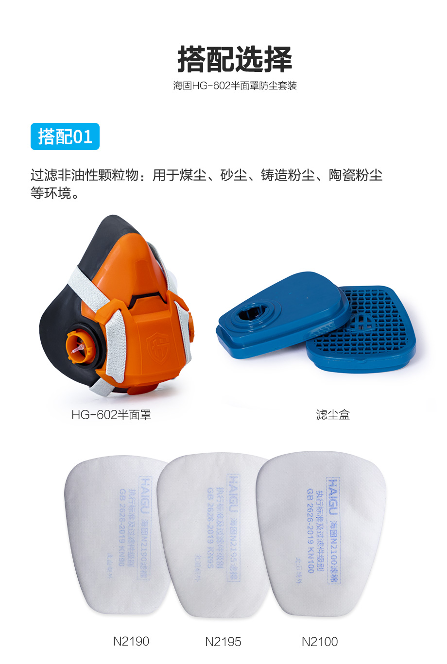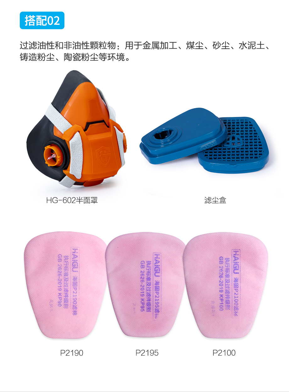 防塵防顆粒物套裝 海固602半面罩+三卡口濾塵盒+濾棉