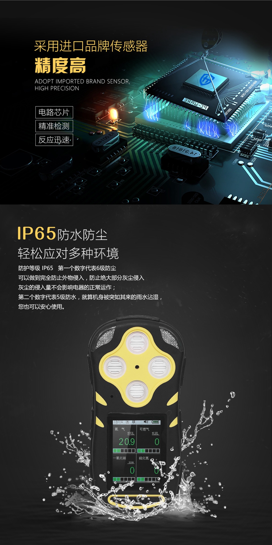 海固HG-FK4彩屏擴散式四合一氣體檢測儀