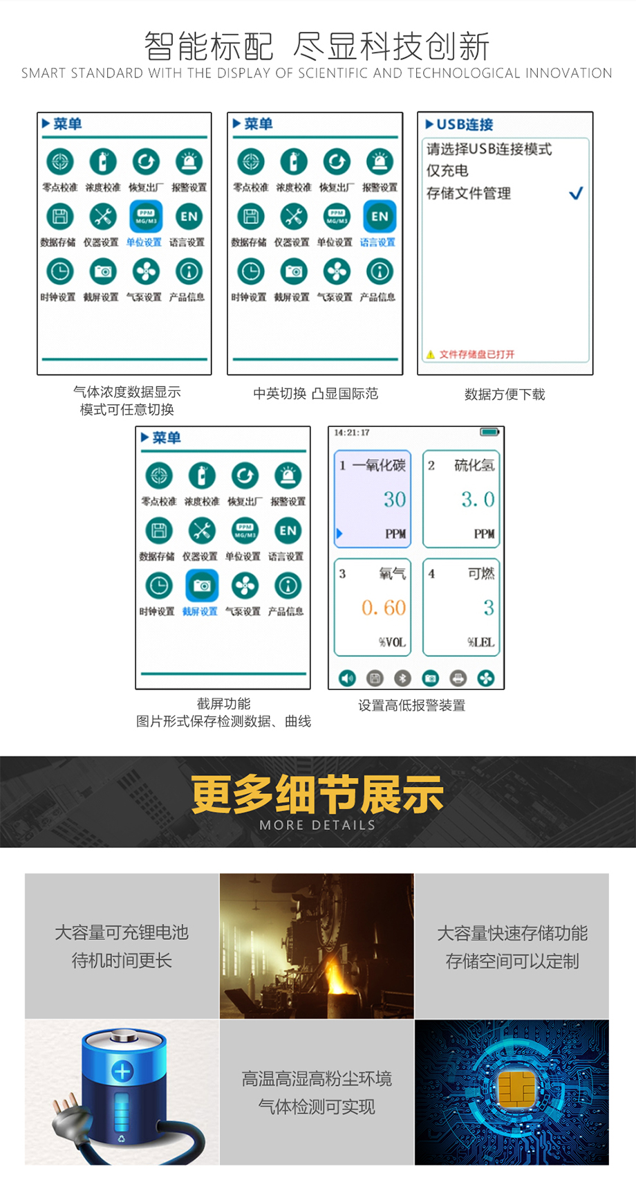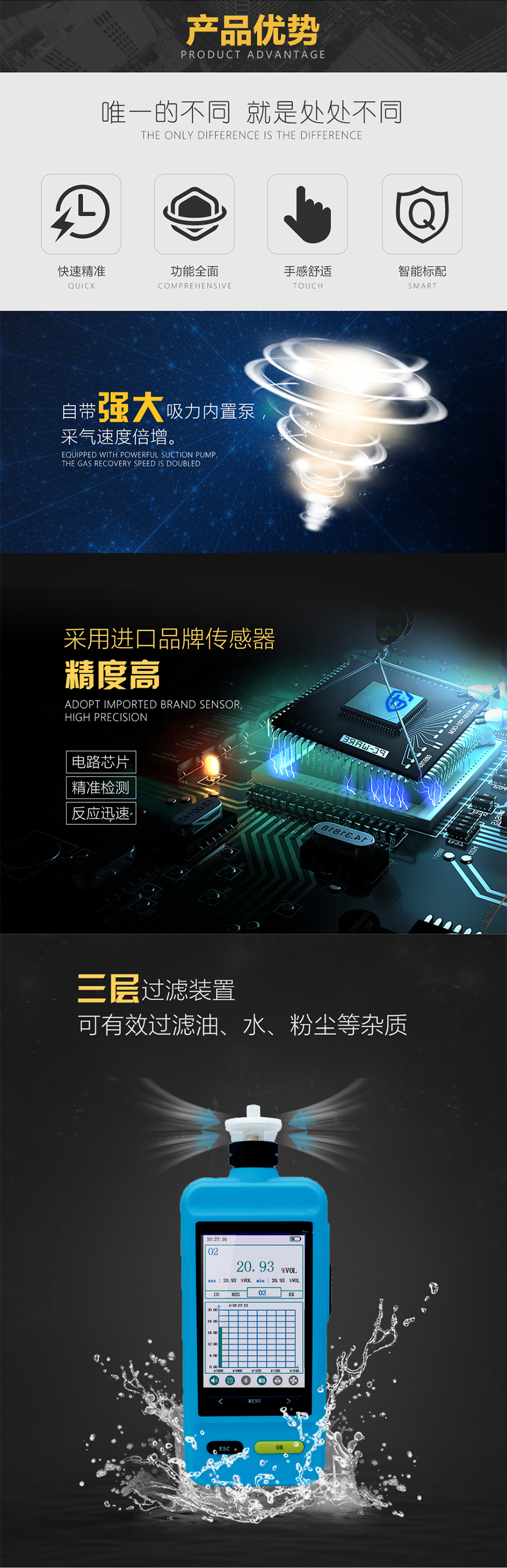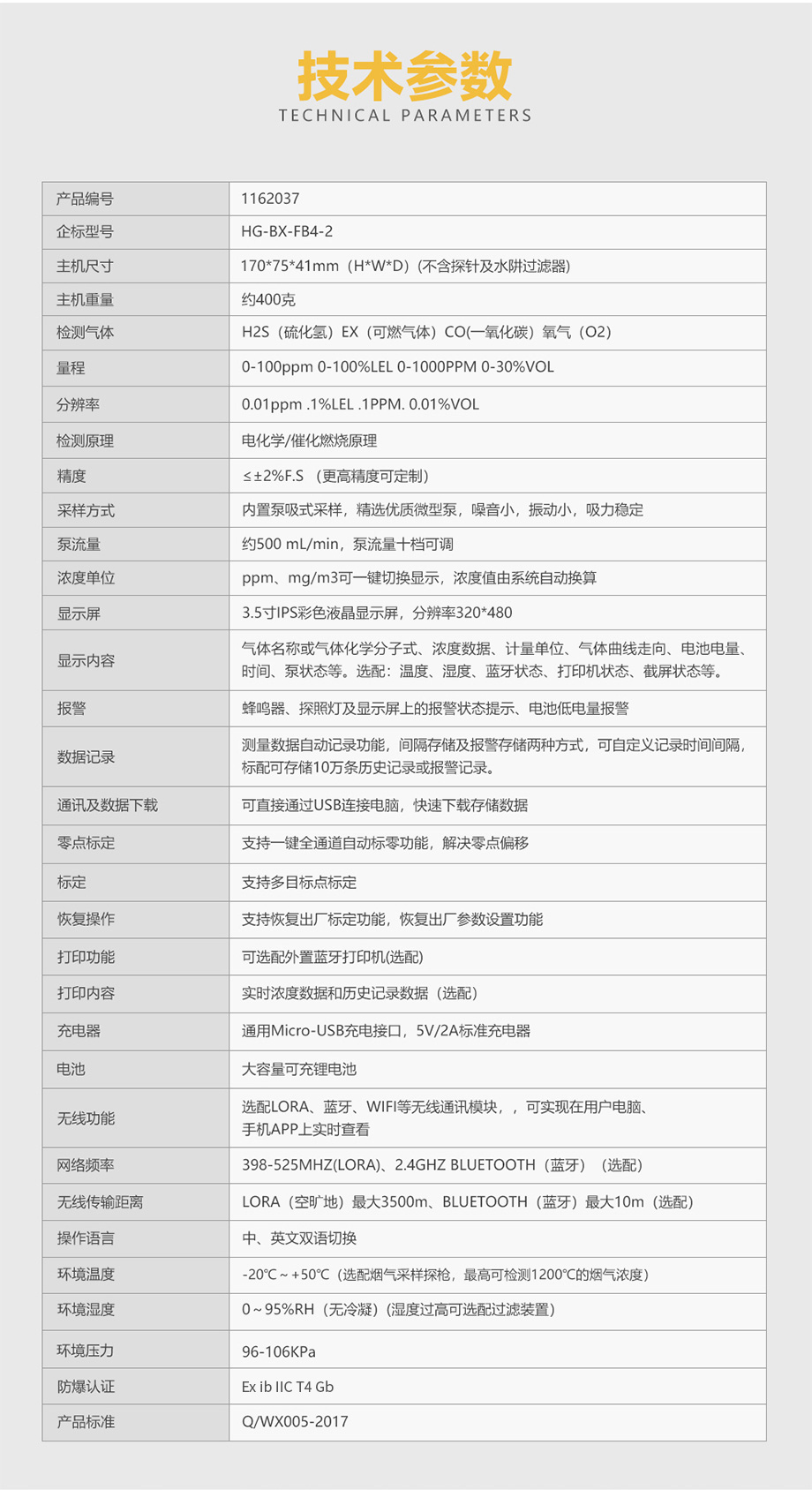 海固HG-BX-FB4-2彩屏泵吸四合一氣體檢測儀