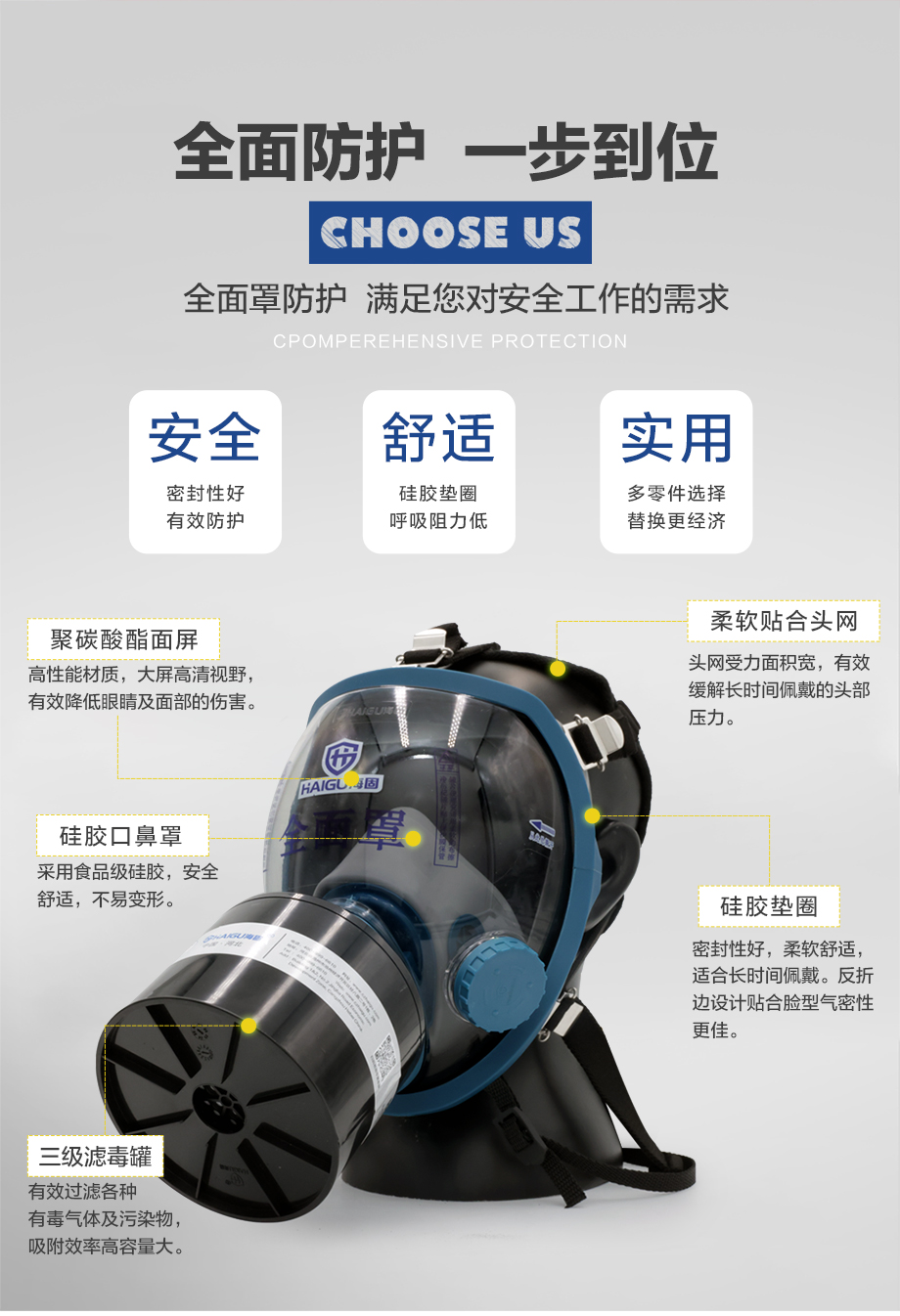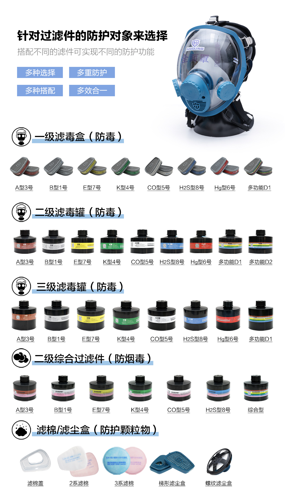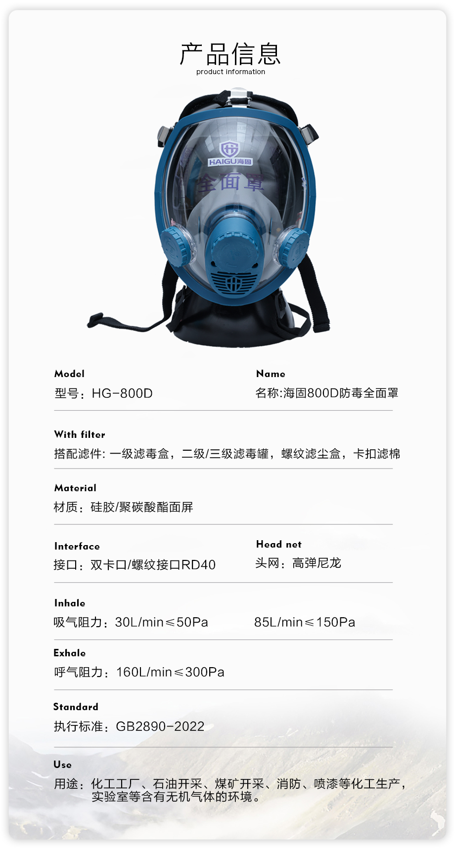 海固800D全面罩+HG-ABS/P-B-3濾毒罐 無機氣體綜合防護套裝