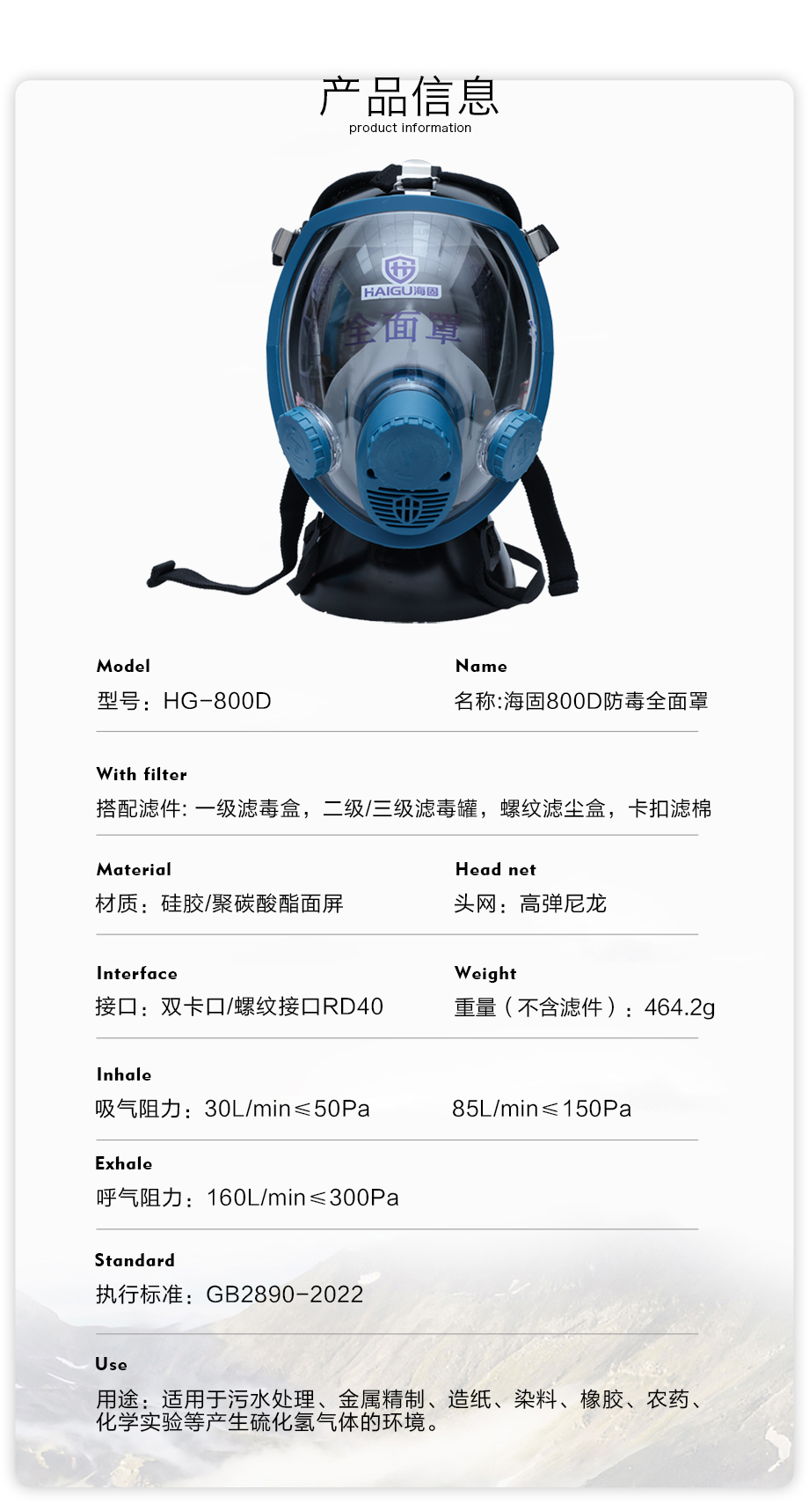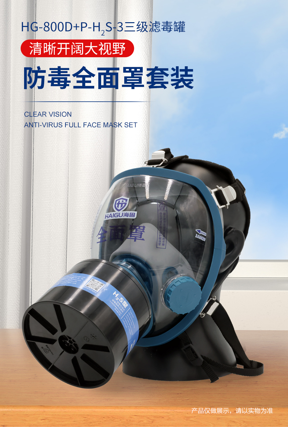 海固800D全面罩+HG-ABS/P-H2S-3濾毒罐 硫化氫防護(hù)套裝