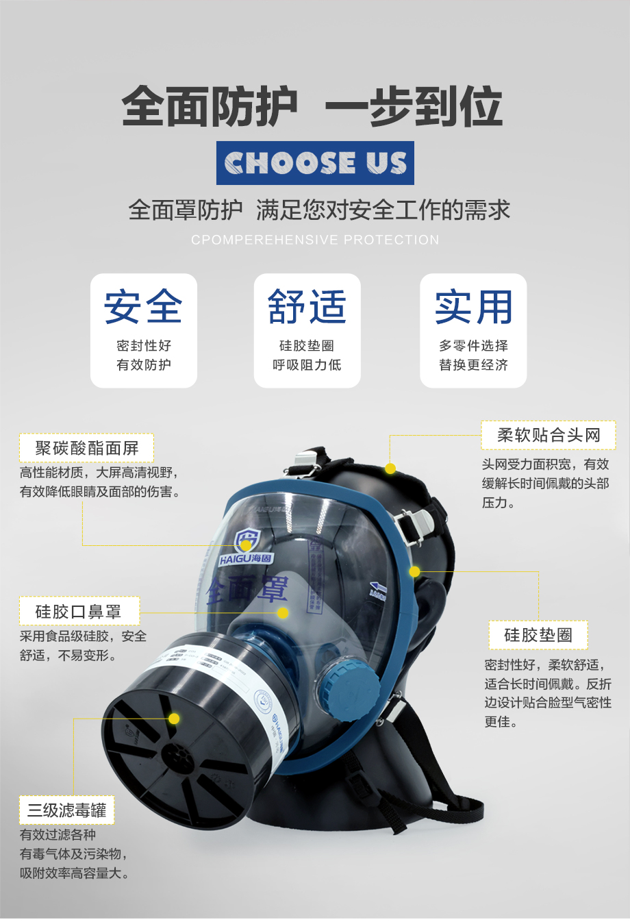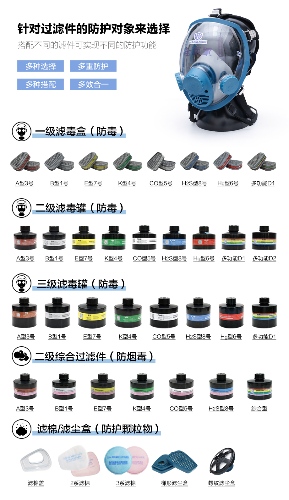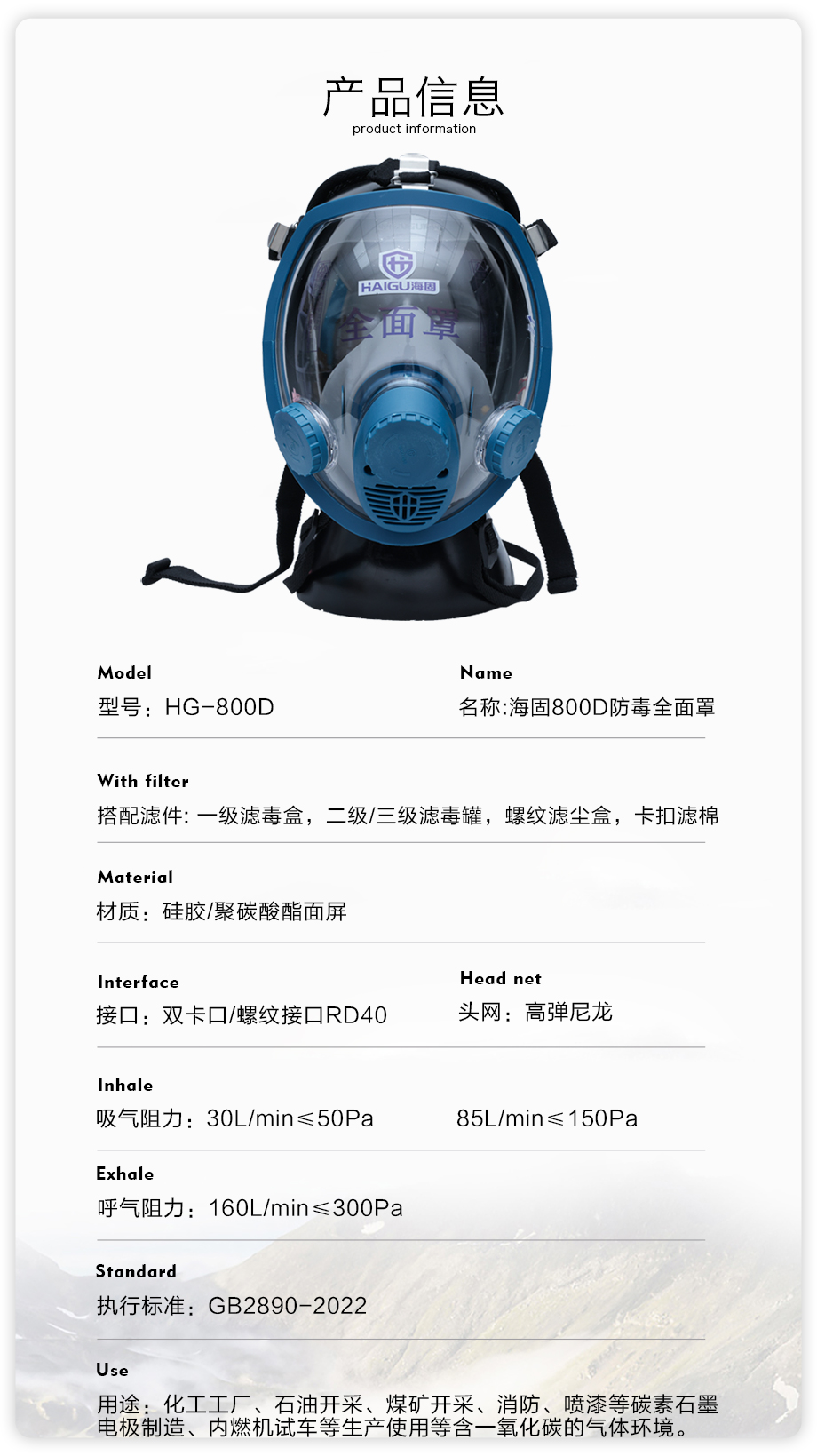 海固800D全面罩+HG-ABS/P-CO-3濾毒罐 一氧化碳防護套裝
