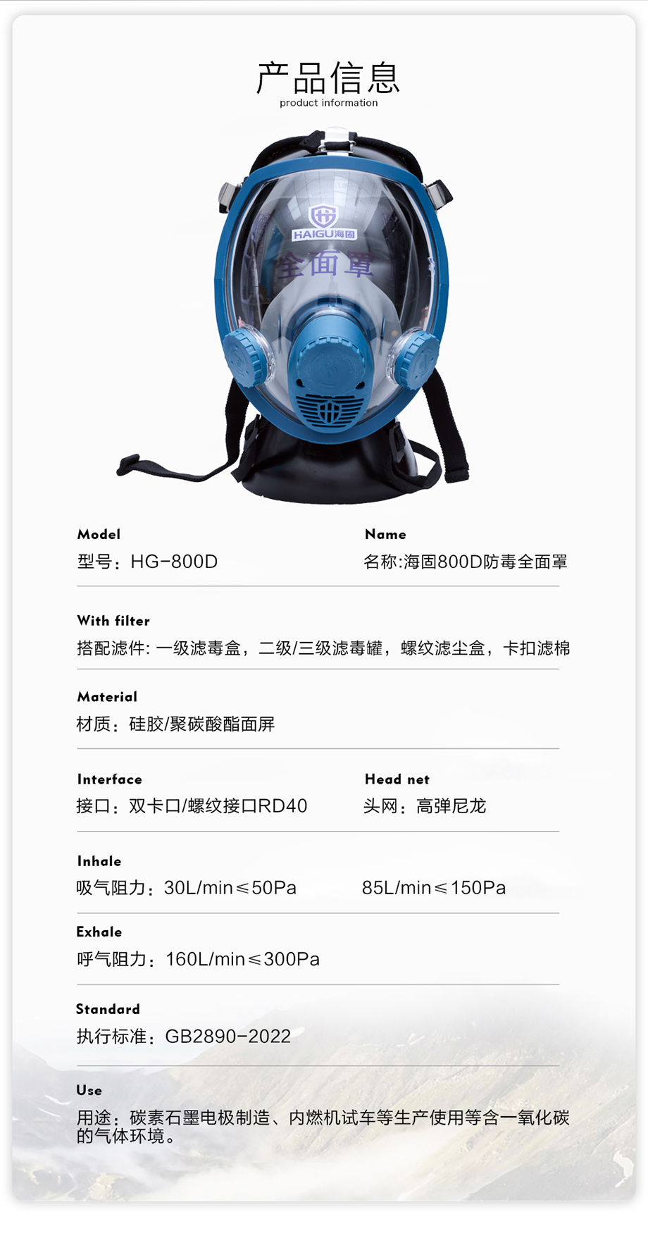 海固800D全面罩+HG-ABS/P-CO-2濾毒罐 一氧化碳防護套裝