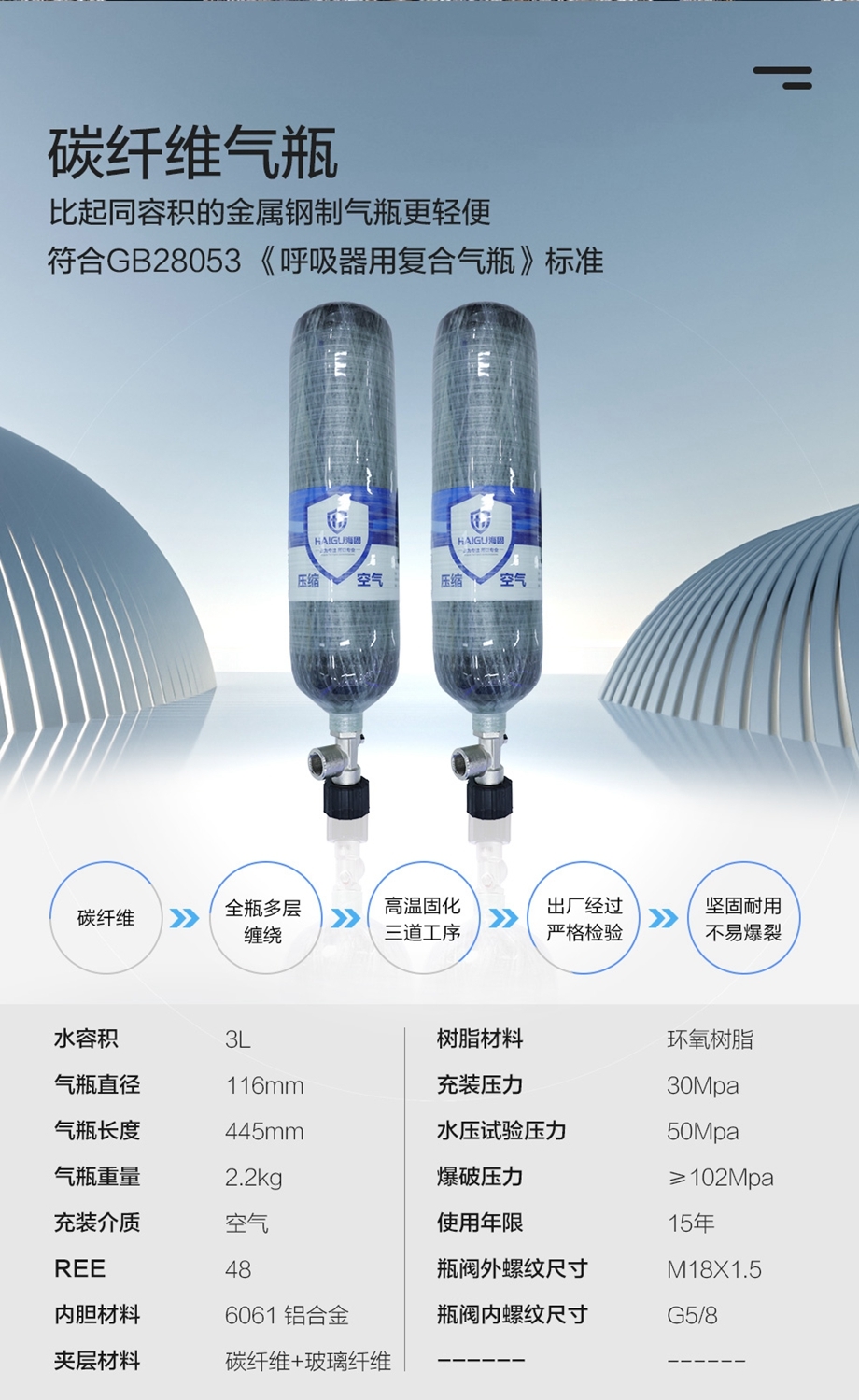 海固RHZKF3/30(快充款) 正壓快充式空氣呼吸器 快速充氣 碳纖維復(fù)合氣瓶