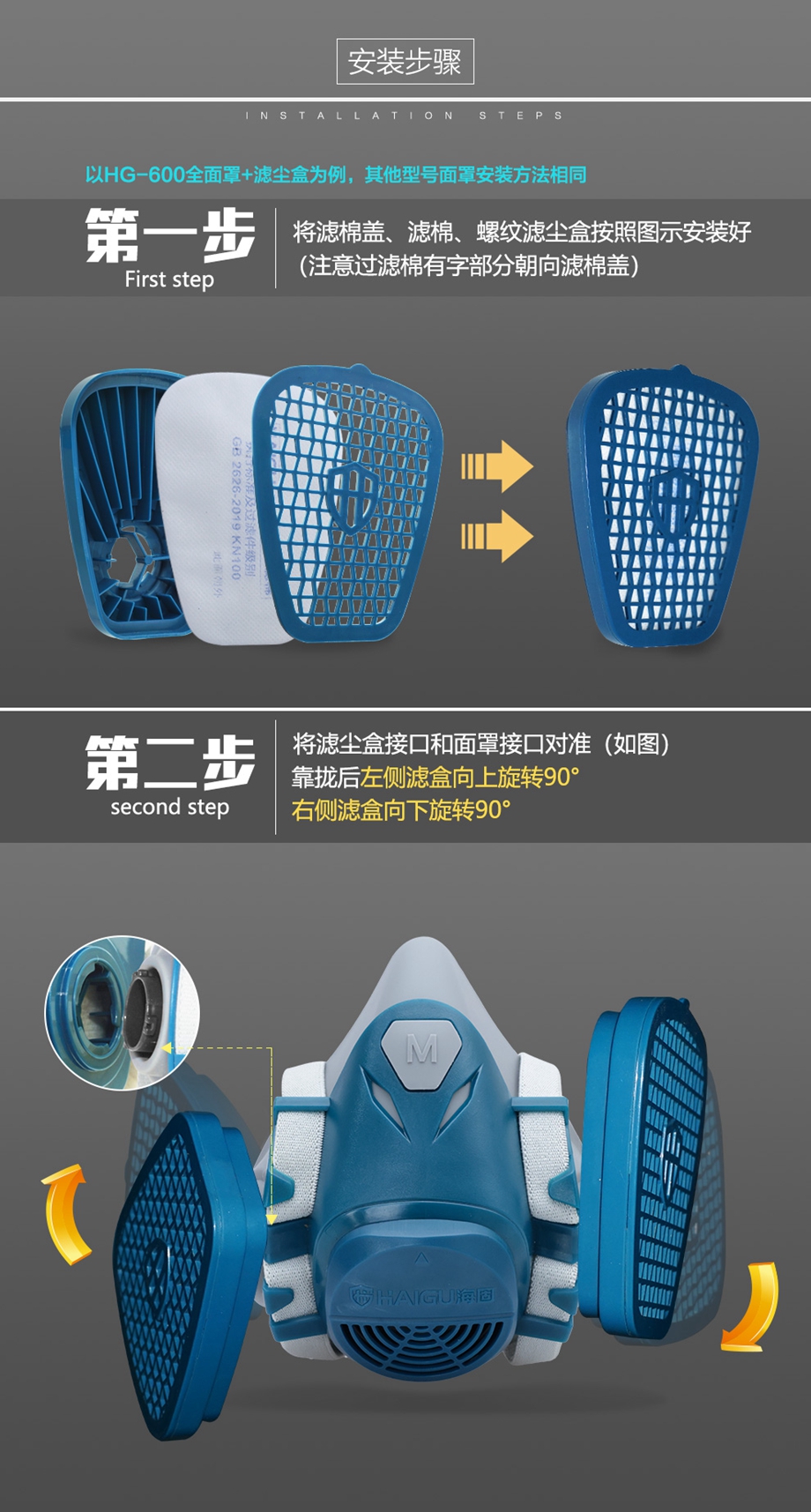 海固半面罩/全面罩搭配濾塵盒濾棉 防塵防顆粒物呼吸套裝